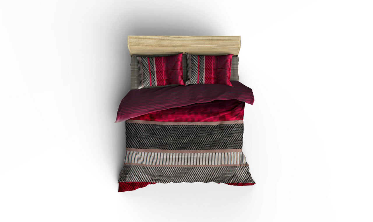 Lenjerie de pat dubla (EU) (IT), 3 piese, L'essentiel Maison, Lotus v2, Roz / Fuchsia / Negru / Gri / Alb