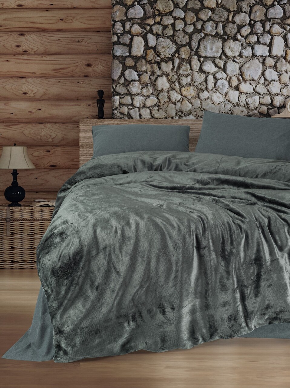 Lenjerie de pat dubla, Flossy - Grey, Cotton Box, Policoton