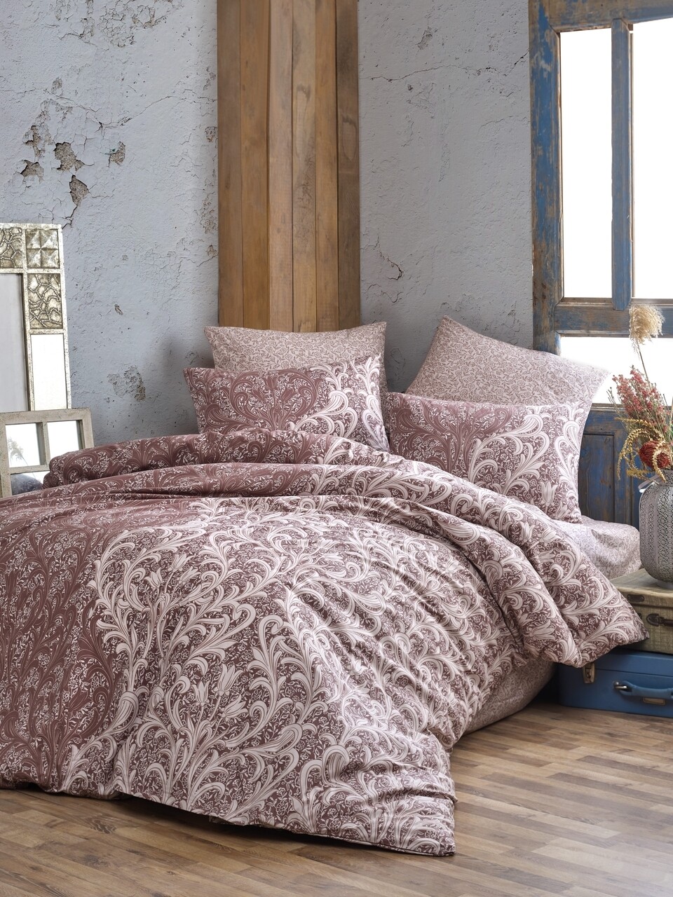 Lenjerie de pat dubla Grand Brown, Majoli Home Collection, 4 piese, 240x260 cm, bumbac ranforce, multicolor