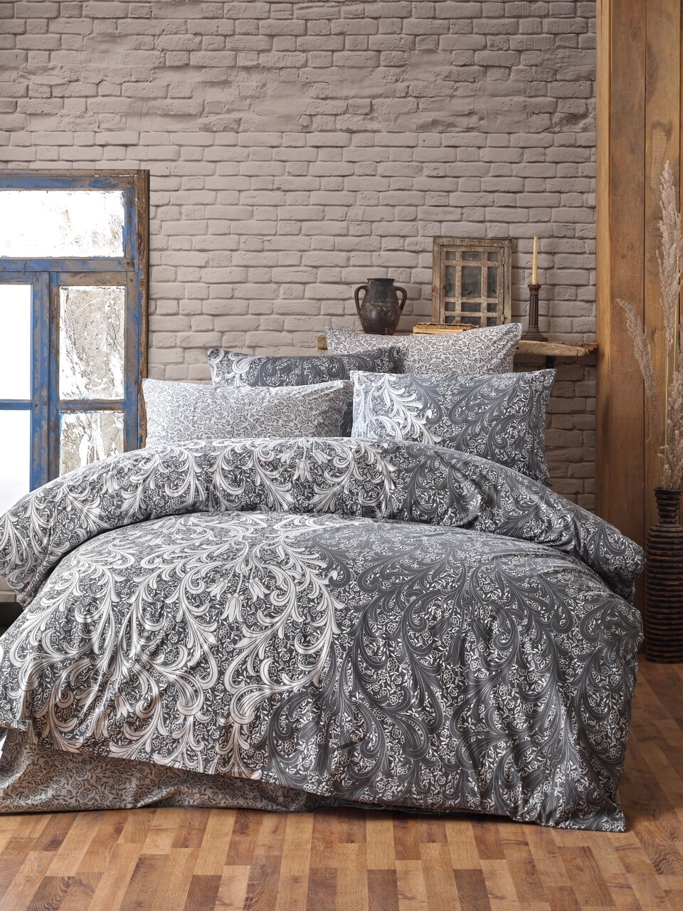 Lenjerie de pat dubla Grand, Majoli Home Collection, 4 piese, 200x220 cm, 100% bumbac ranforce, negru