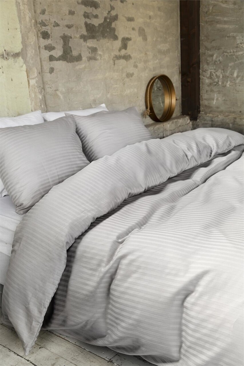 Lenjerie de pat dubla Hotel Linnen Grey, Primaviera Deluxe, 3 piese, 200x220/260 cm, bumbac satinat, gri