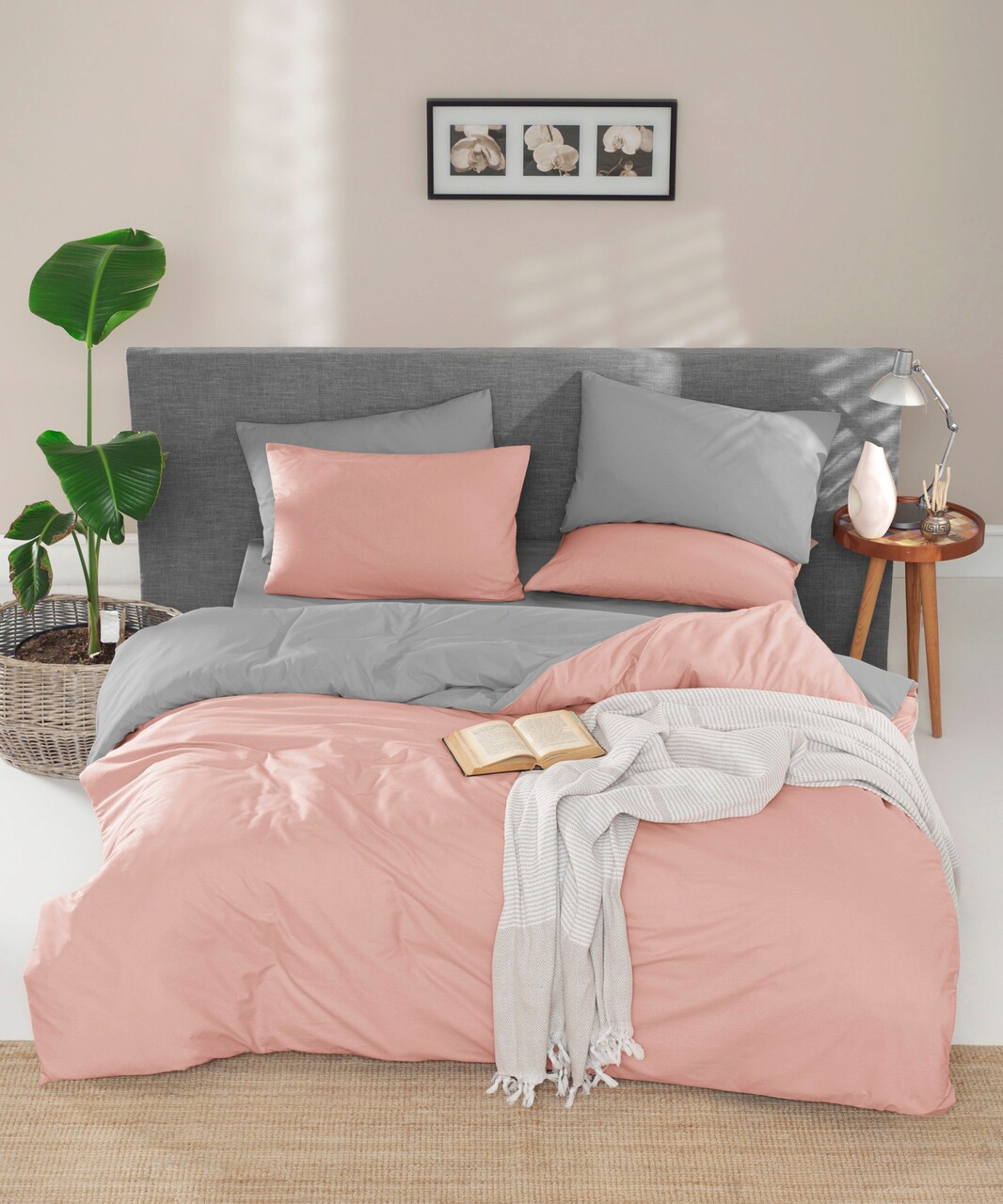 Lenjerie de pat dubla, Çift Yönlü - Powder, Grey, Acasă EnLora, Bumbac Ranforce