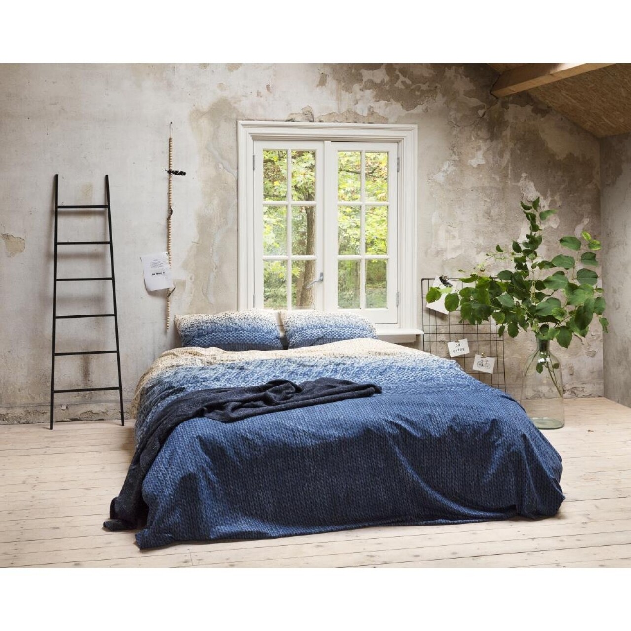 Lenjerie de pat dubla Indigo Knit Blue - Primavera Deluxe, Royal Textile, 3 piese, 240 x 260 cm, 100% bumbac, albastru/bej