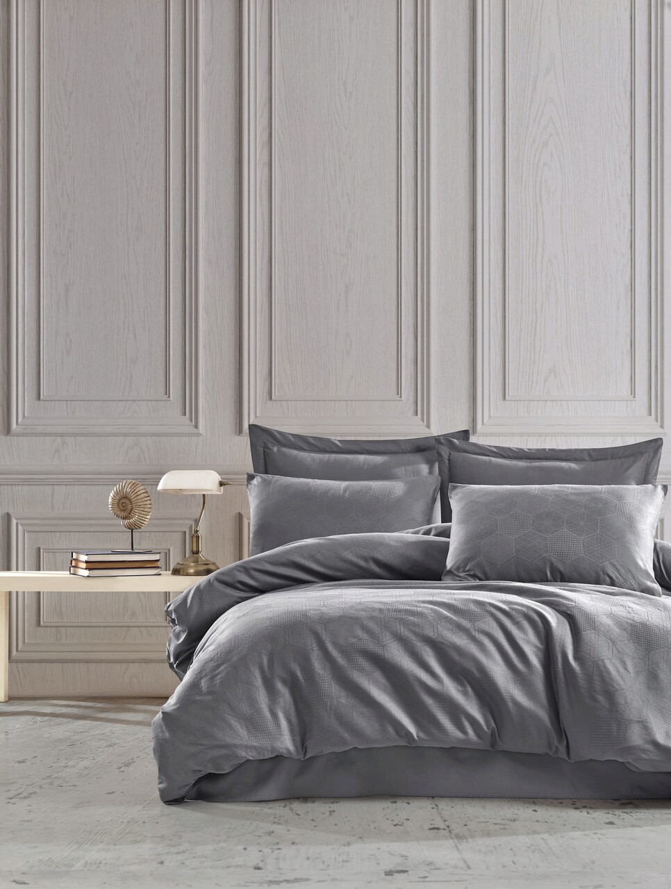 Lenjerie de pat dubla, Jacob - Grey, Şaheser, Bumbac