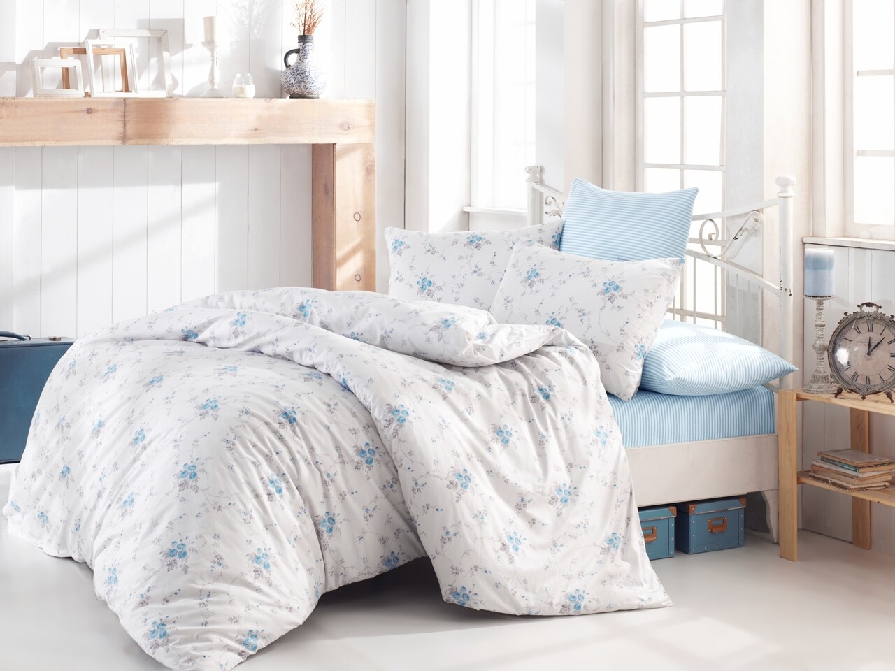 Lenjerie de pat dubla Karin, Majoli Home Collection, 4 piese, 200x220 cm, 100% bumbac ranforce, albastru