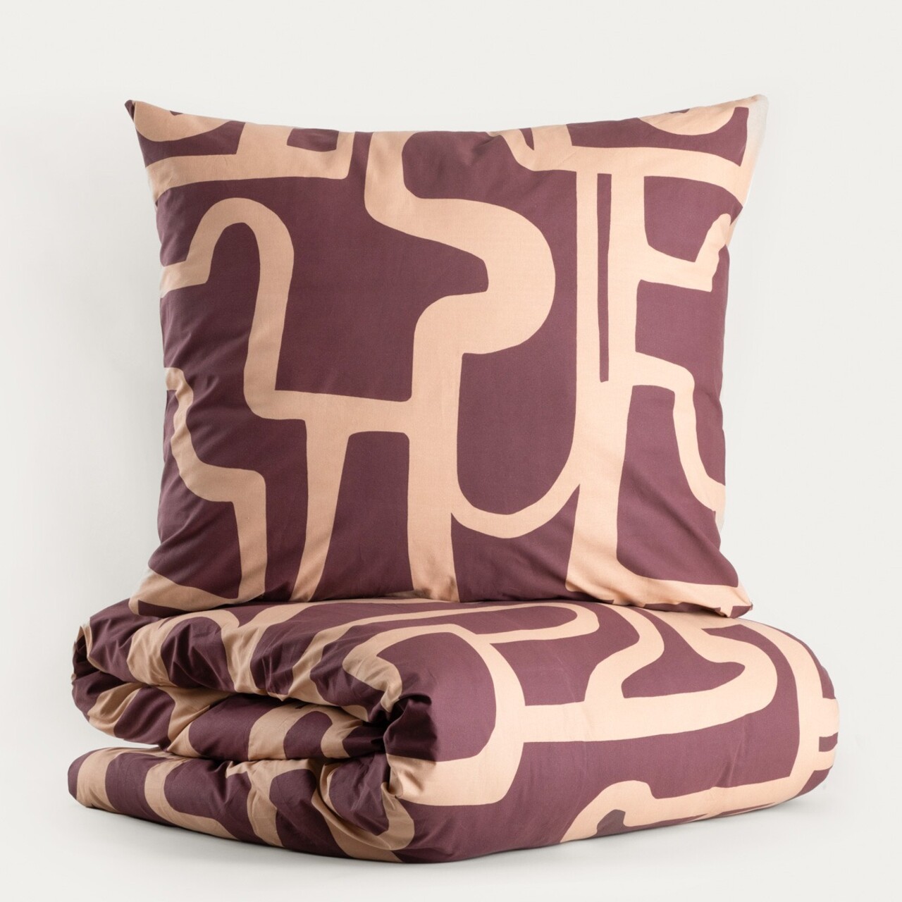 Lenjerie de pat dubla Karmen, Homla, 3 piese, 160x200 cm, bumbac, visiniu/bej