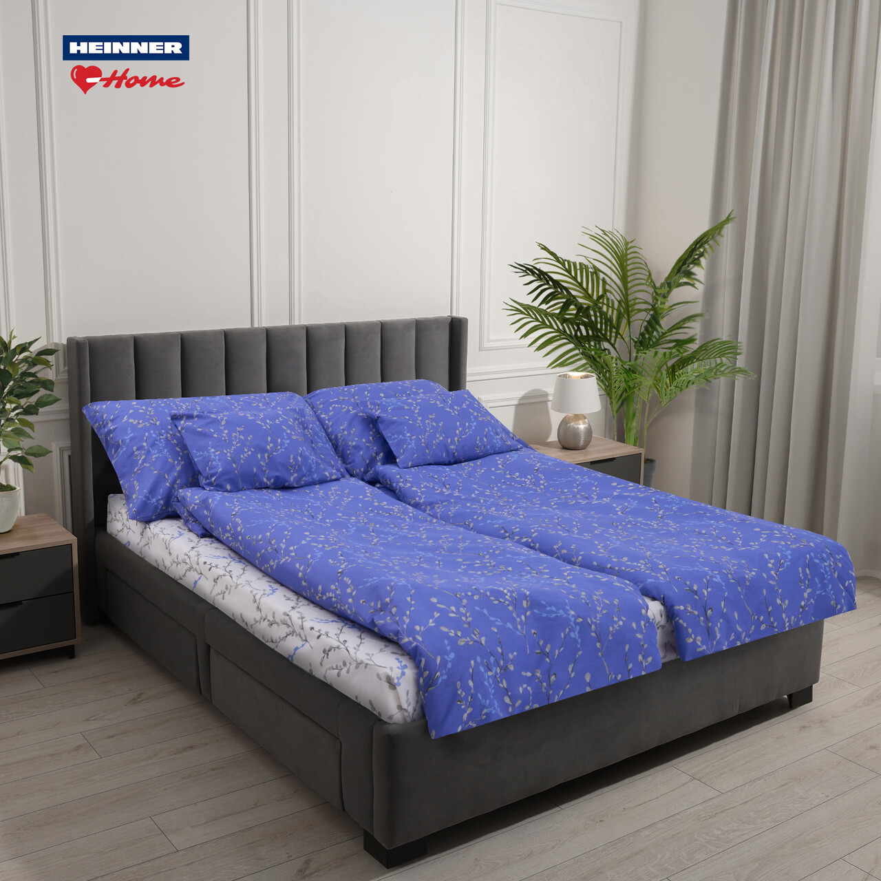 Lenjerie de pat dubla Kim, Heinner Home, 4 piese, 200x220 cm, 100% bumbac, albastru