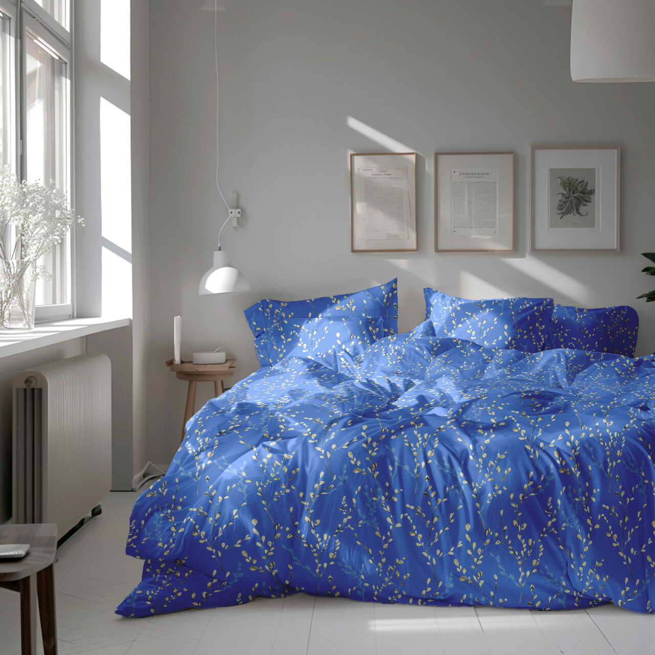 Materialul din care este realizata este 100% bumbac, acest lucru facand lenjeria de pat potrivita pentru utilizare atat in perioada mai rece cat si in cea calda. Densitate material: 132TC.
