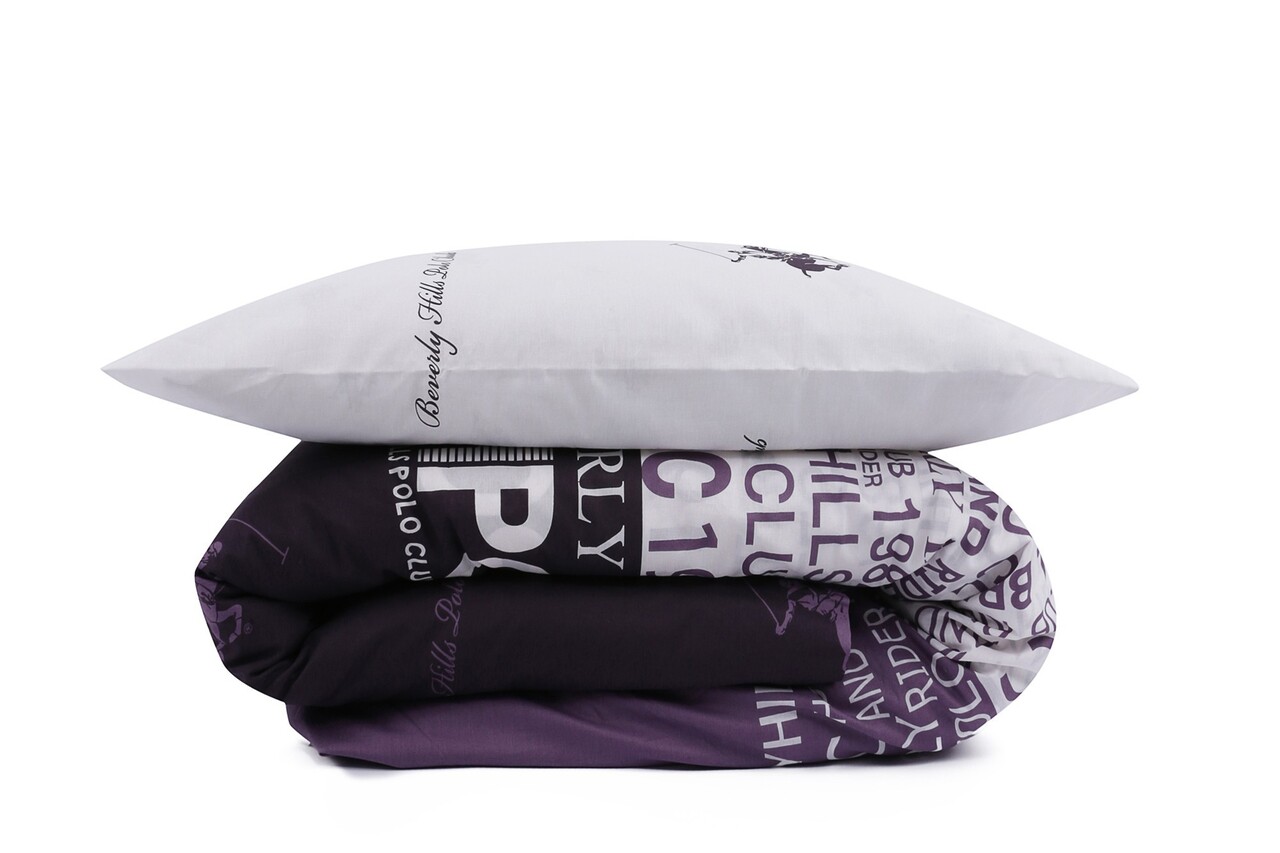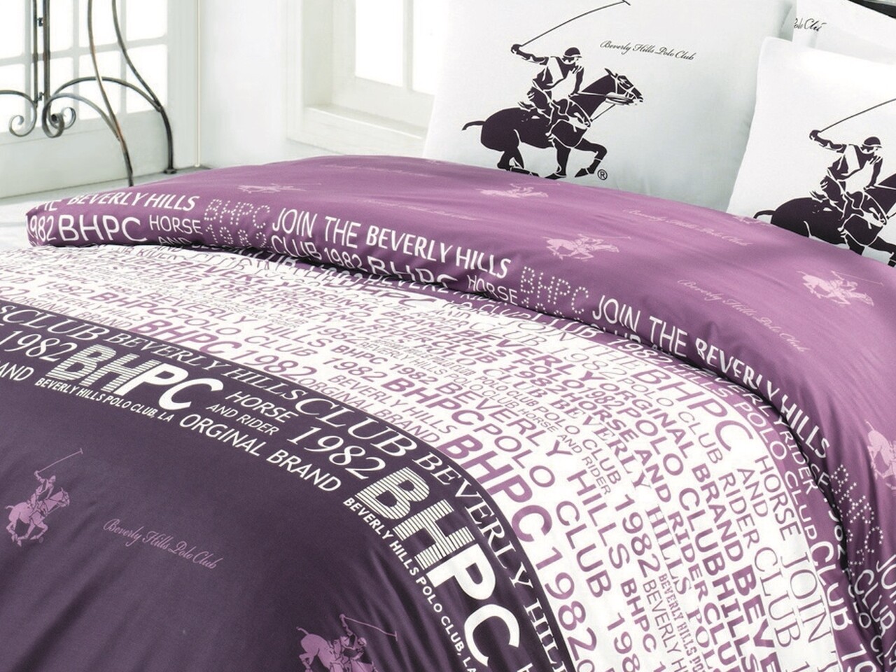Lenjerie de pat dubla King, 3 piese, 220x240 cm, 100% bumbac ranforce, Beverly Hills Polo Club, BHPC 004, lila
