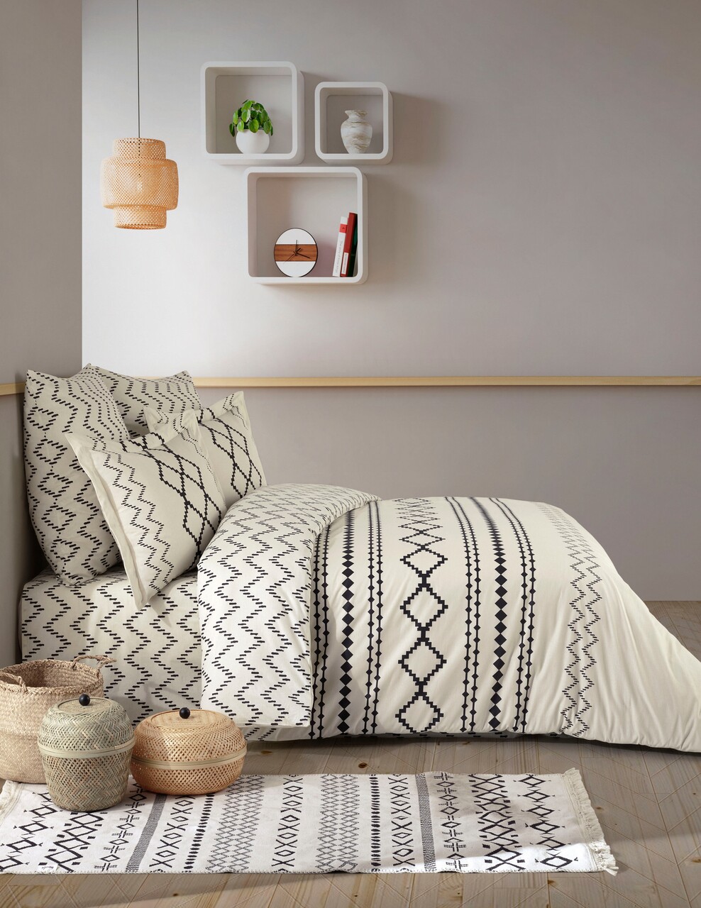 Lenjerie de pat dubla King, 3 piese, 220x240 cm, 100% bumbac ranforce, Turkiz, Etnick, crem