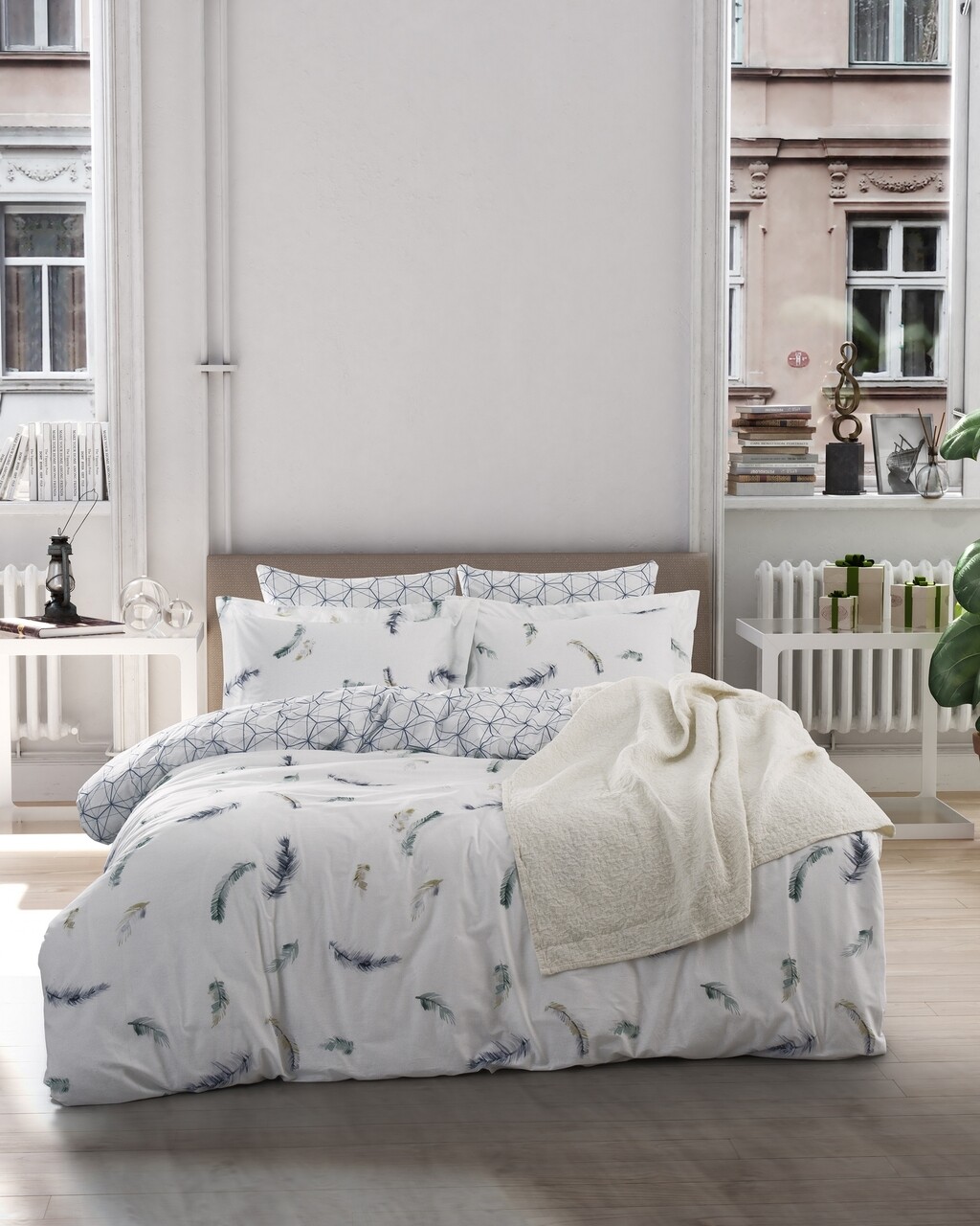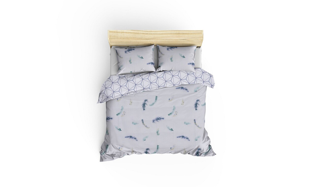 Lenjerie de pat dubla King, 3 piese, 220x240 cm, 100% bumbac ranforce, Turkiz, Paradise, albastru inchis