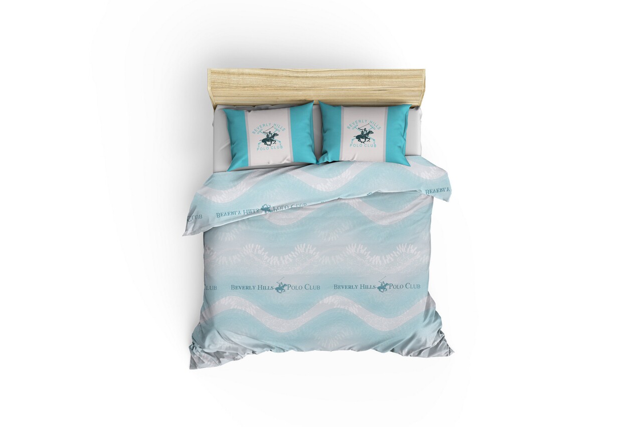 Lenjerie de pat dubla King, 3 piese, 220x240 cm, 60x60 cm, 100% bumbac ranforce, Beverly Hills Polo Club, BHPC 032, turcoaz