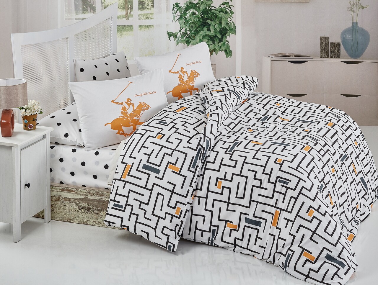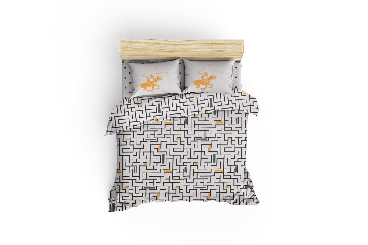 Lenjerie de pat dubla King, 3 piese, 220x240 cm, 60x60 cm, 100% bumbac ranforce, Beverly Hills Polo Club, BHPC 035, alb