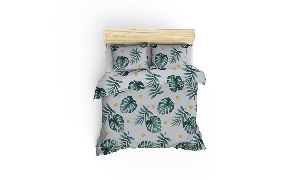 Lenjerie de pat dubla King, 3 piese, 220x240 cm, amestec bumbac, EnLora Home, Monstera, verde