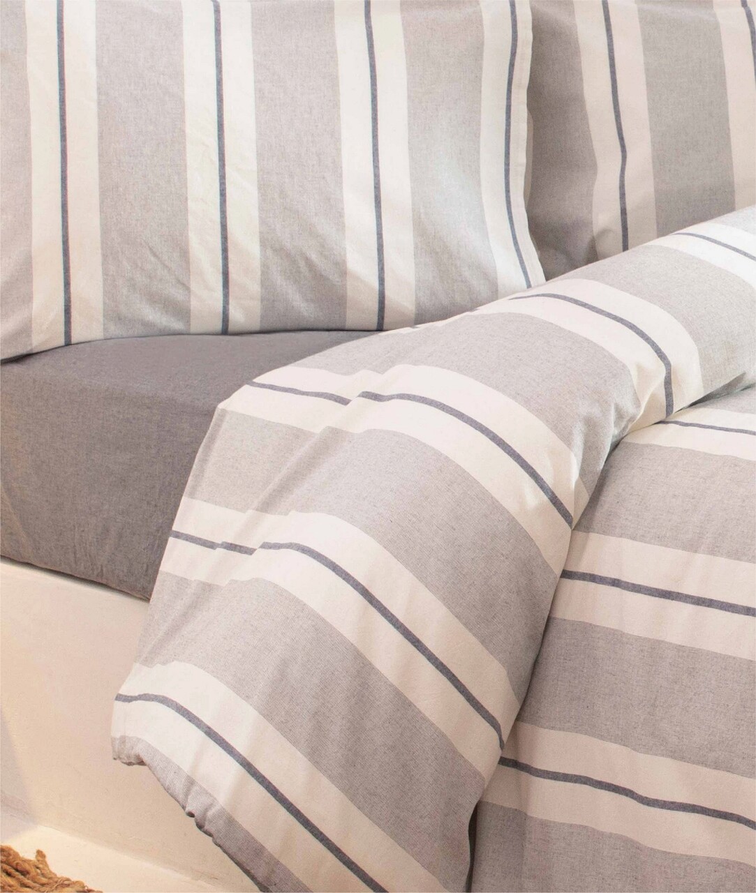 Lenjerie de pat dubla King (cearceaf cu elastic) 4 piese, Viento - Grey, Dark Blue, Elliott, 50% bumbac / 50% poliester