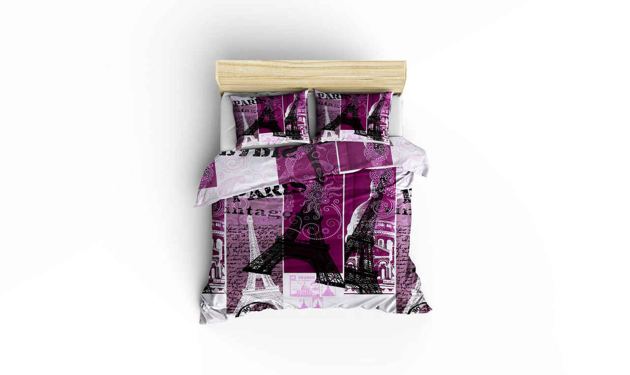 Lenjerie de pat dubla King (EU) (ES), L'essentiel Maison, Paris, Alb / Fuchsia / Negru