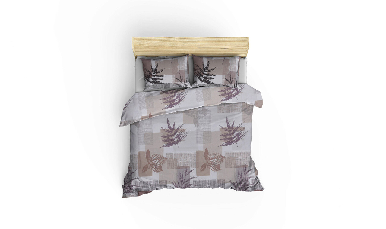 Lenjerie de pat dubla King (EU) (ES), Leaf - Brown, Victoria, Bumbac Ranforce