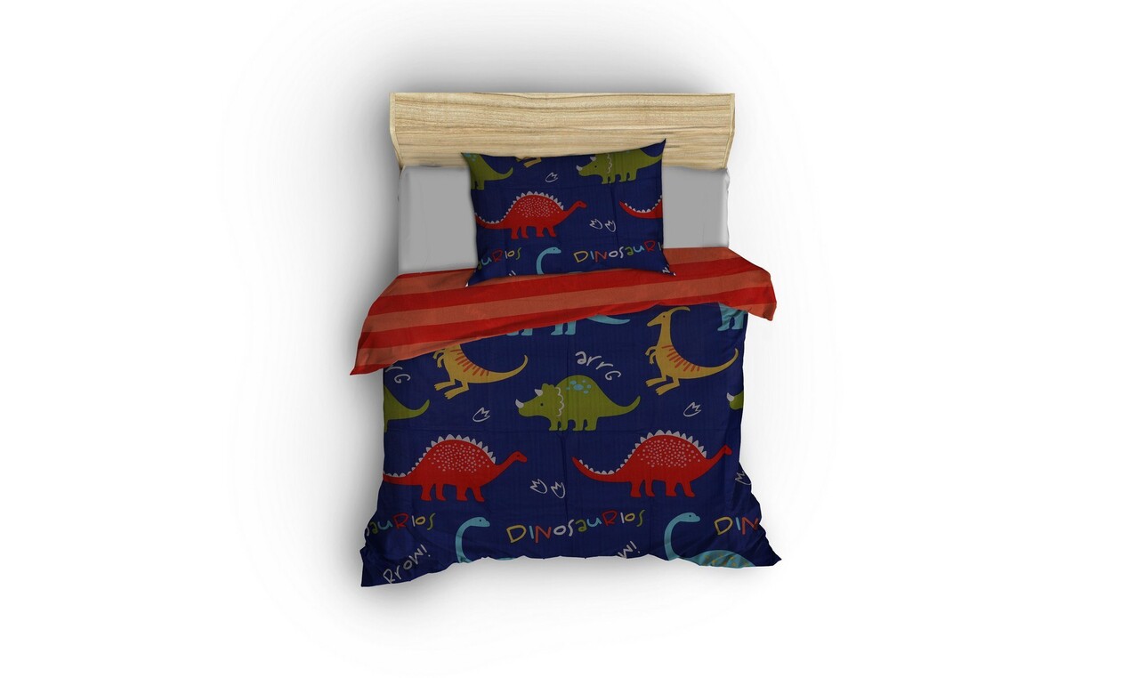Lenjerie de pat dubla King (FR), 3 piese, L'essentiel Maison, Dinazorus, Albastru / Roșu / Galben