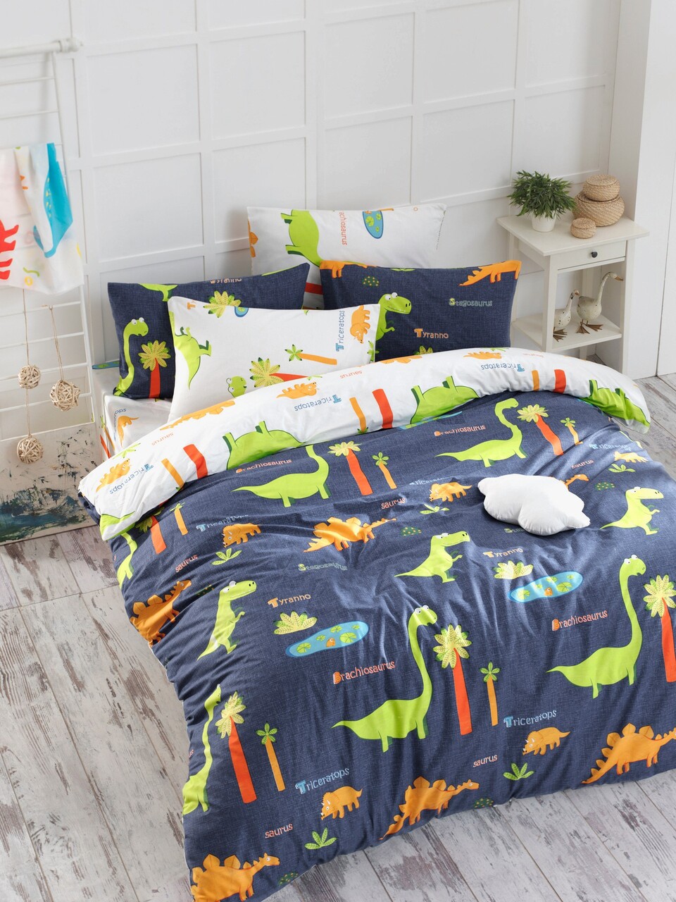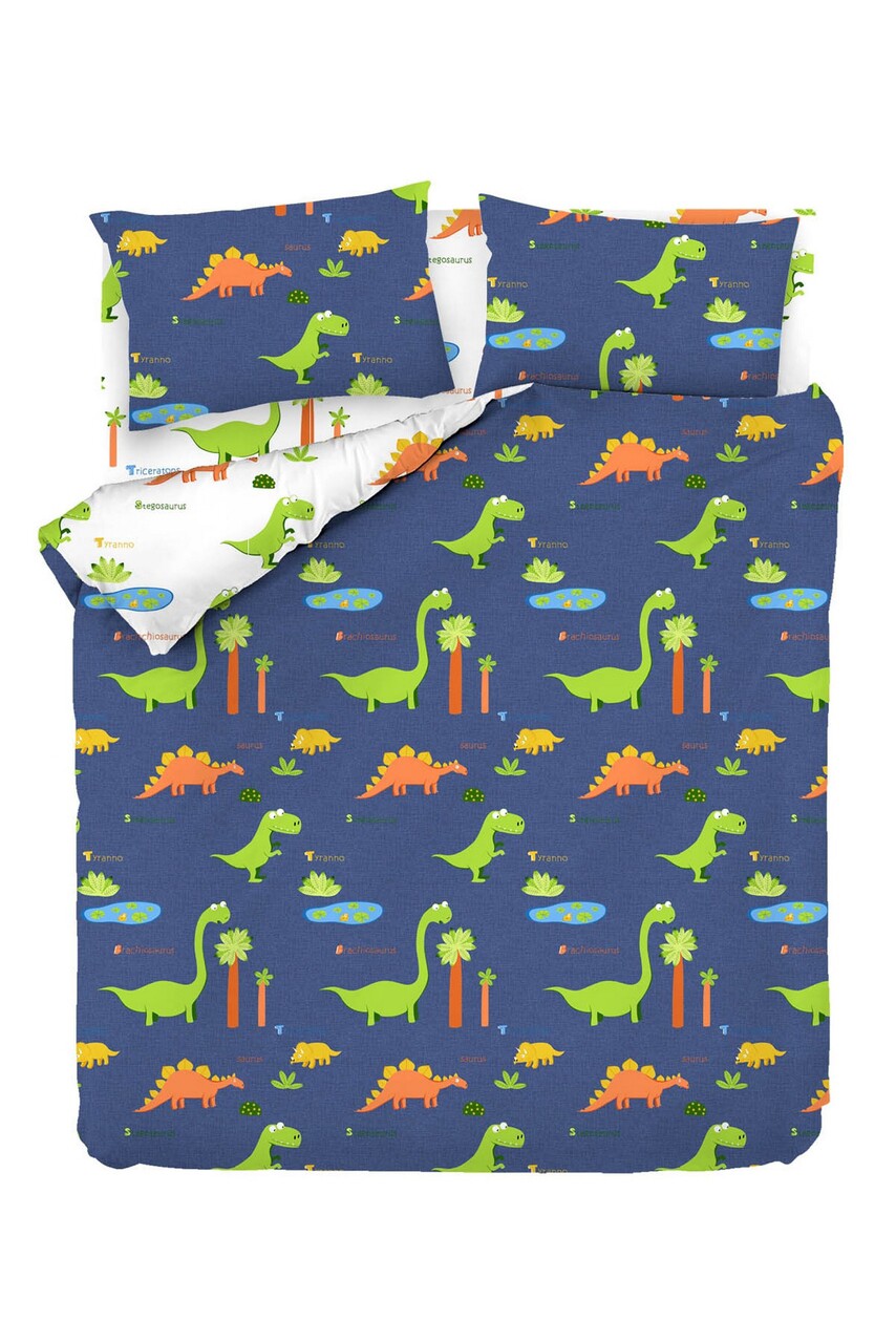 Lenjerie de pat dubla King (FR), 3 piese, L'essentiel Maison, Dinolar, Albastru inchis