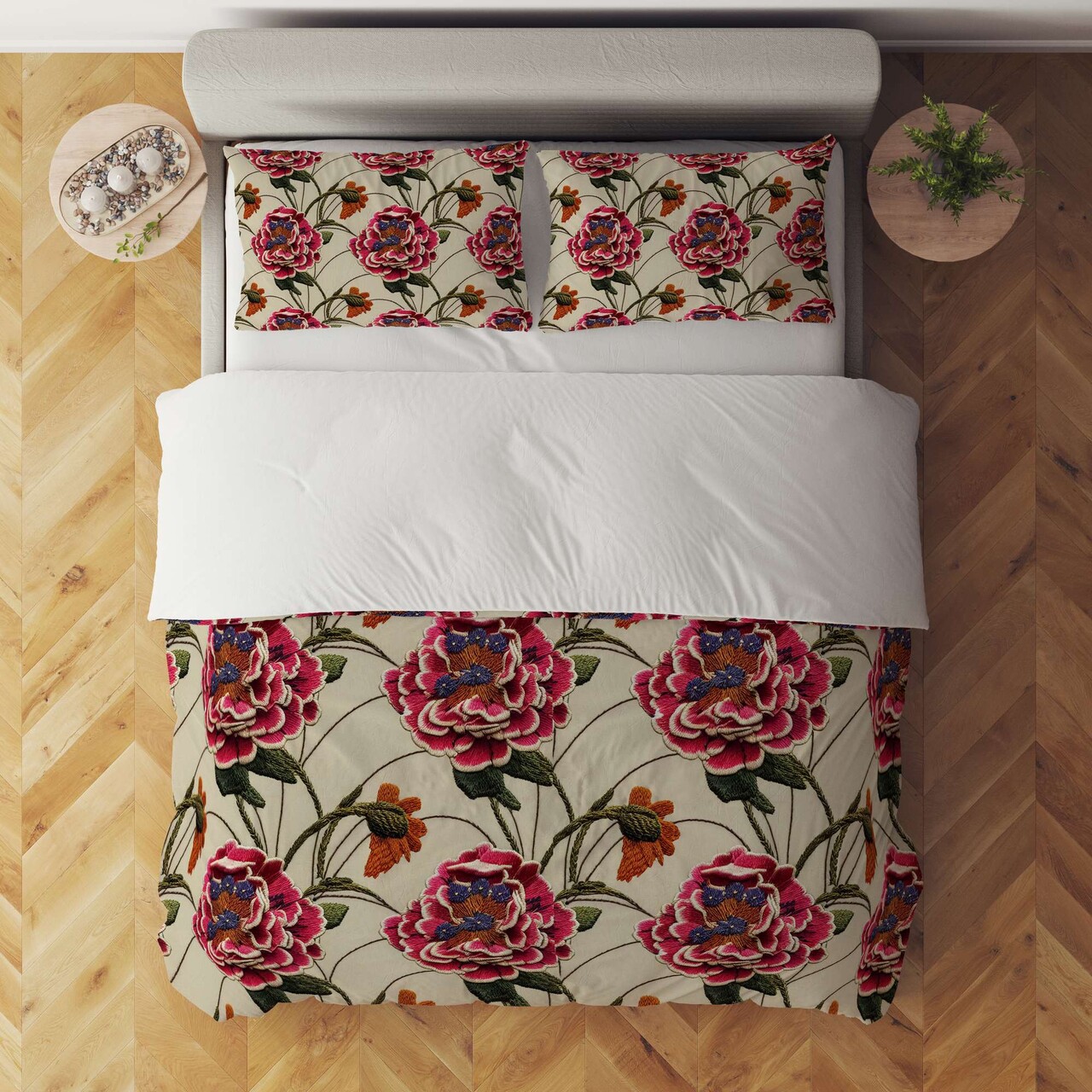 Lenjerie de pat dubla King (FR), 3 piese, L'essentiel Maison, FLW_DVT25-30, Multicolor