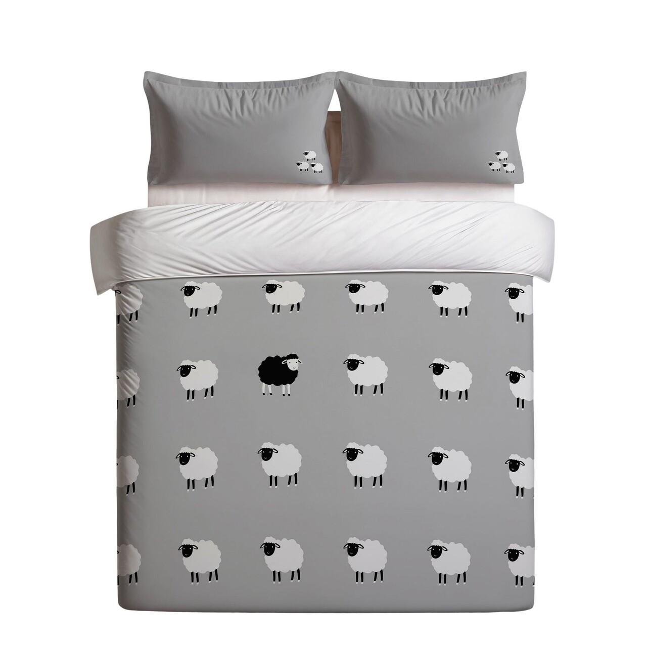 Lenjerie de pat dubla King (FR), 3 piese, L'essentiel Maison, The Black Sheep, Gri