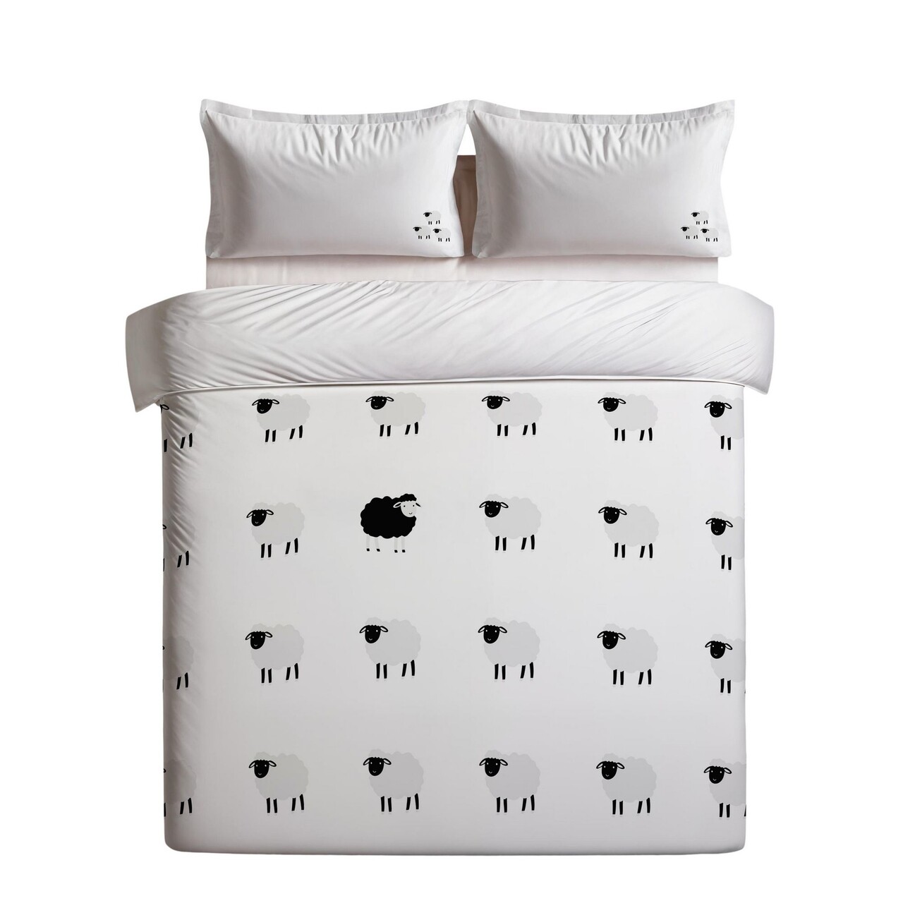 Lenjerie de pat dubla King (FR), 3 piese, L'essentiel Maison, The Black Sheep, Alb