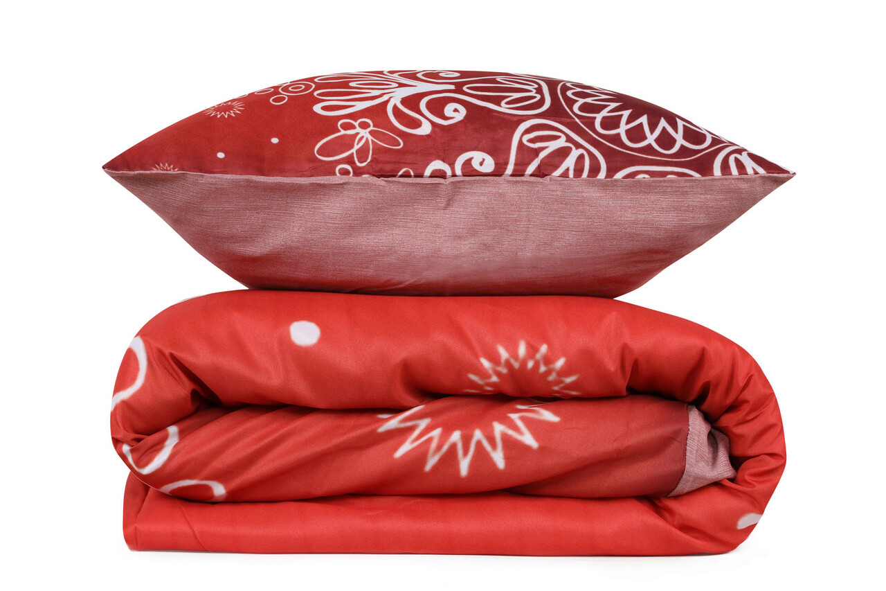 Lenjerie de pat dubla King (FR), 3 piese, L'essentiel Maison, 427, Rosu/Alb
