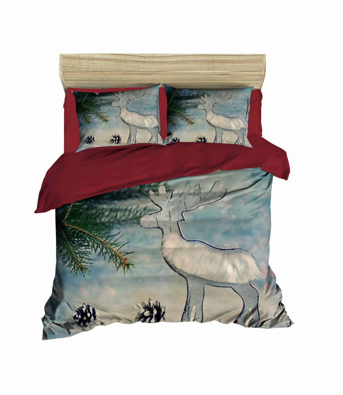Lenjerie de pat dubla King (FR), 3 piese, L'essentiel Maison, 436, Maroon / Blue / Green / White