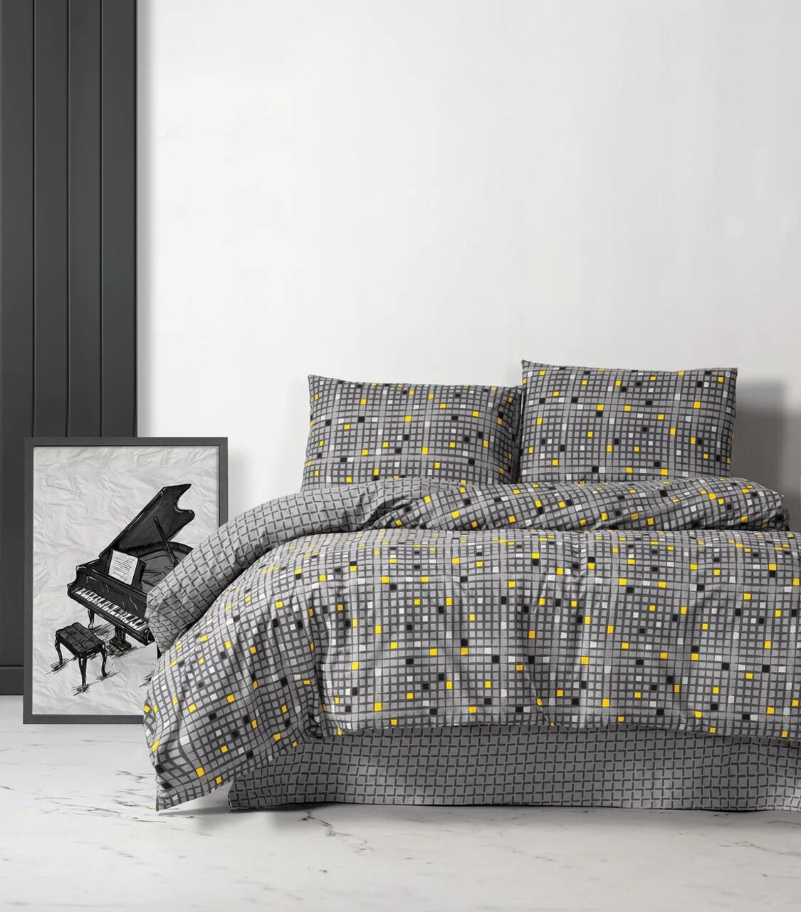 Lenjerie de pat dubla King (FR), L'essentiel Maison, Dama, Galben