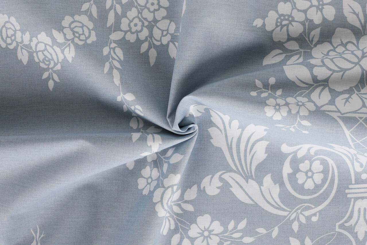 Lenjerie de pat dubla King (FR), L'essentiel Maison, Gloria, Albastru/Alb