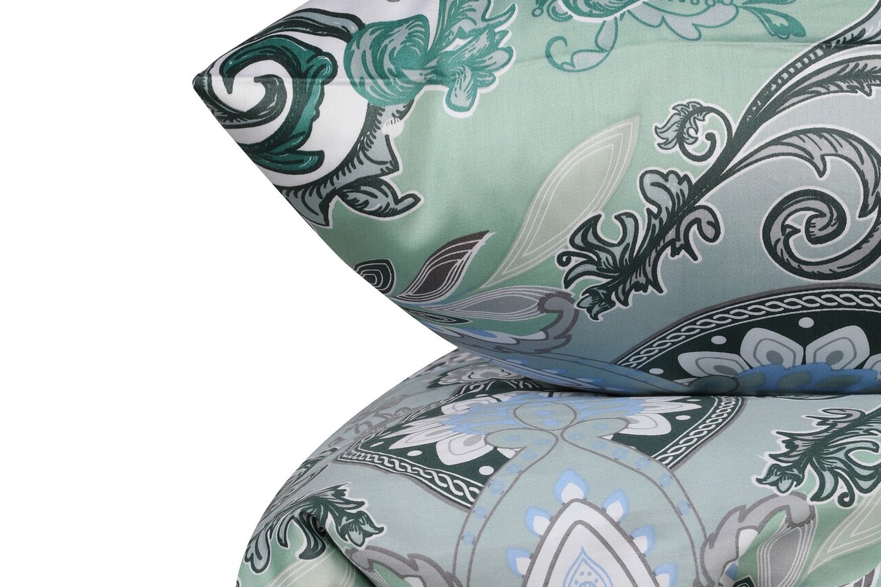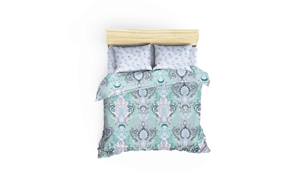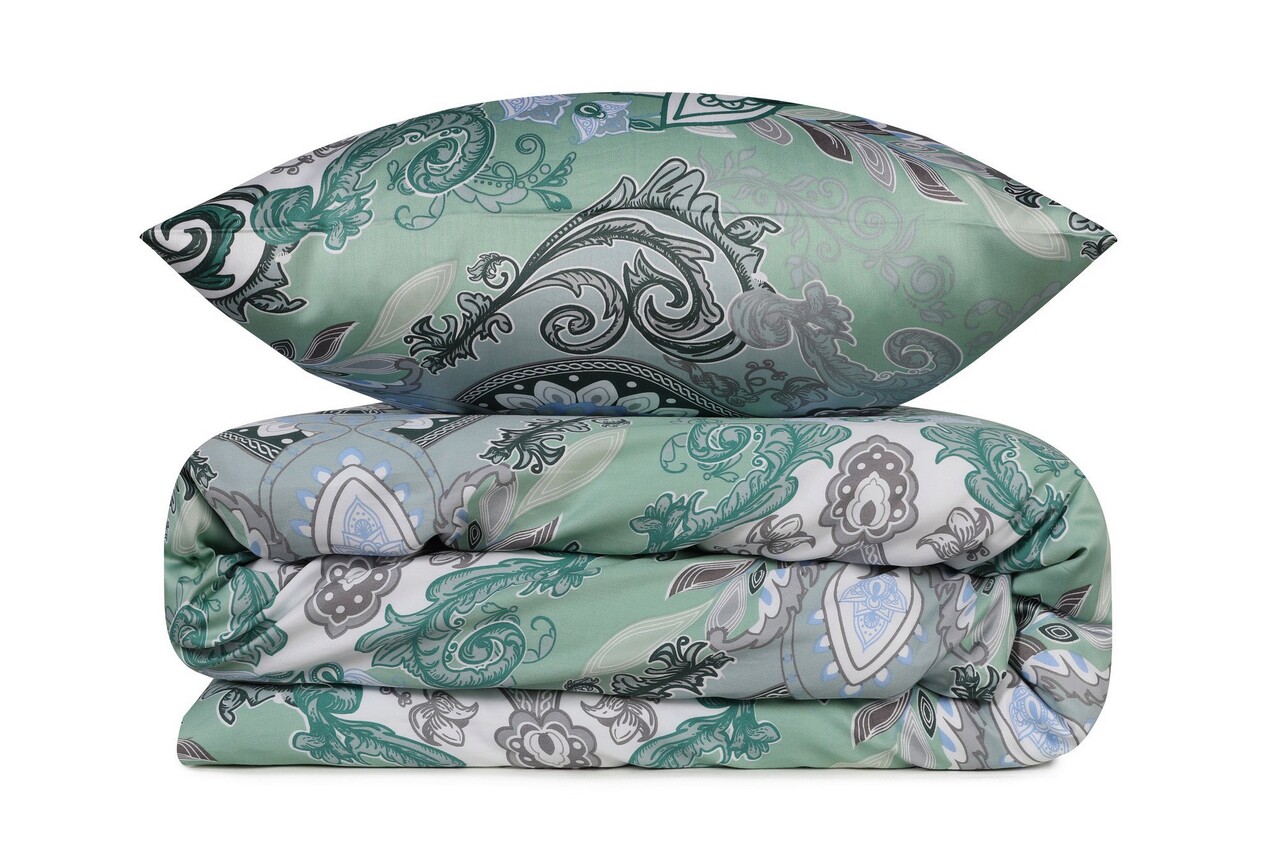 Lenjerie de pat dubla King (FR), L'essentiel Maison, Mavarova, Mentă / Verde / Alb