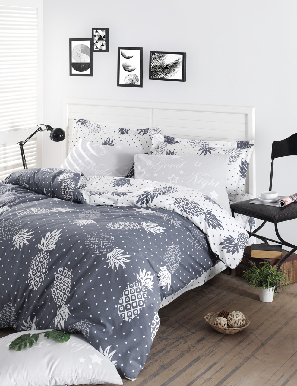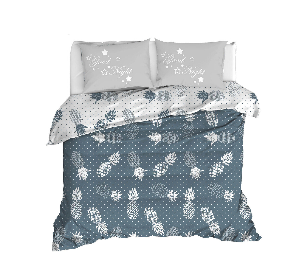 Lenjerie de pat dubla King (FR), L'essentiel Maison, Night, Albastru petrol / Alb