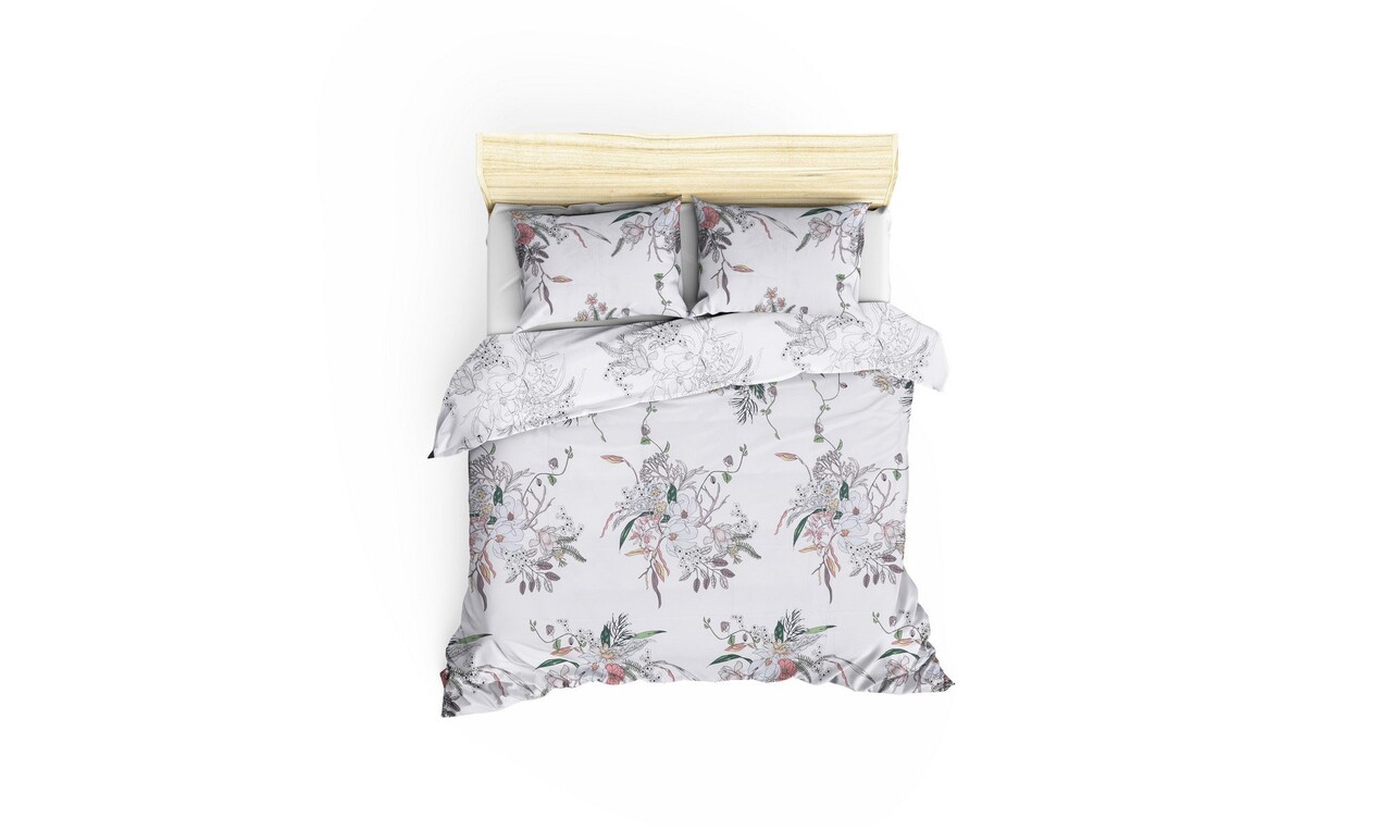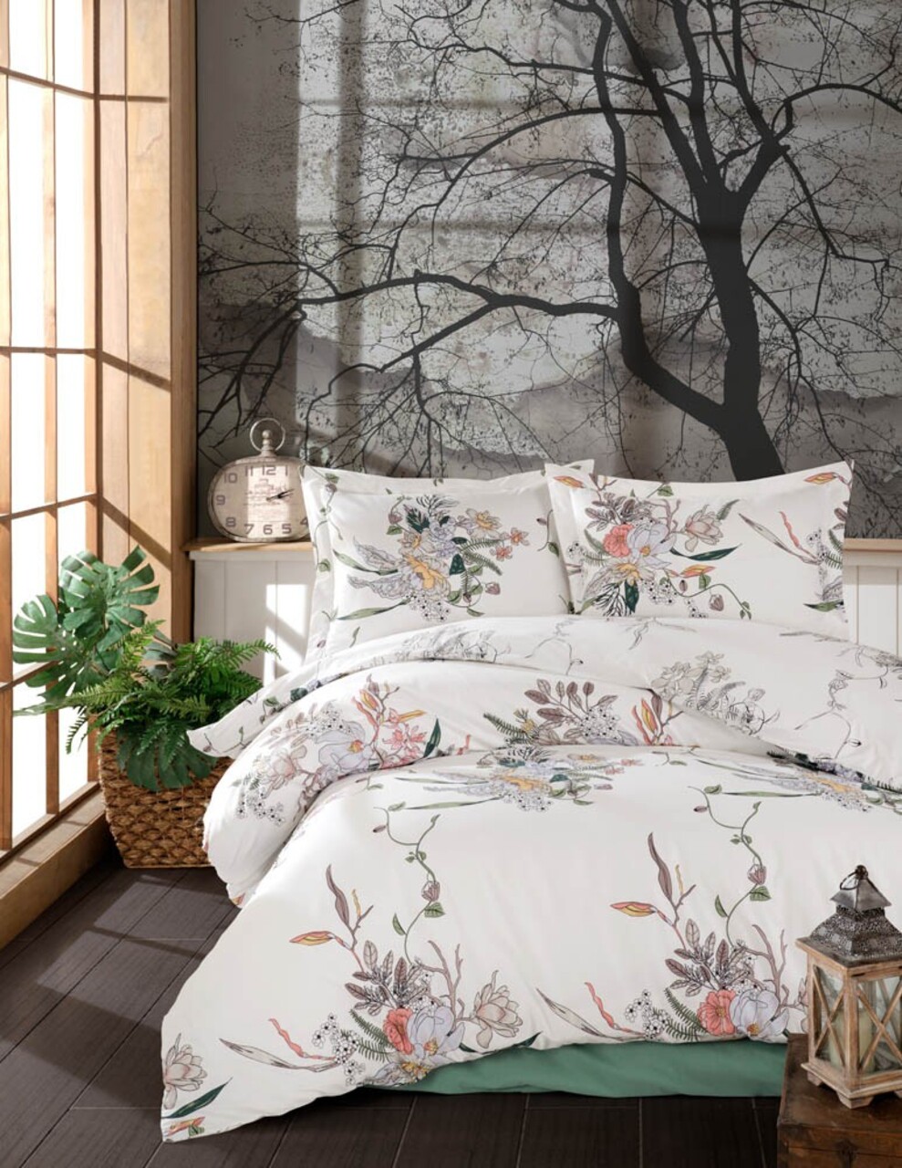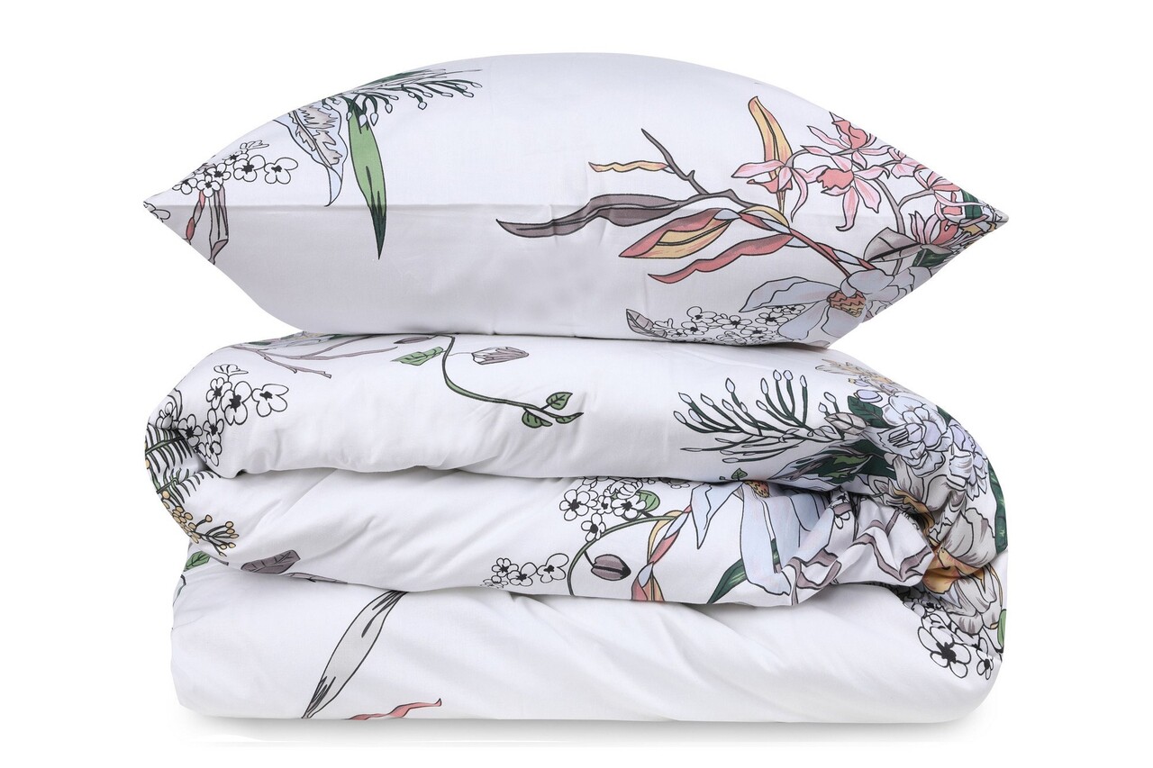 Lenjerie de pat dubla King (FR), L'essentiel Maison, Salom, Alb / Maro / Roz / Verde