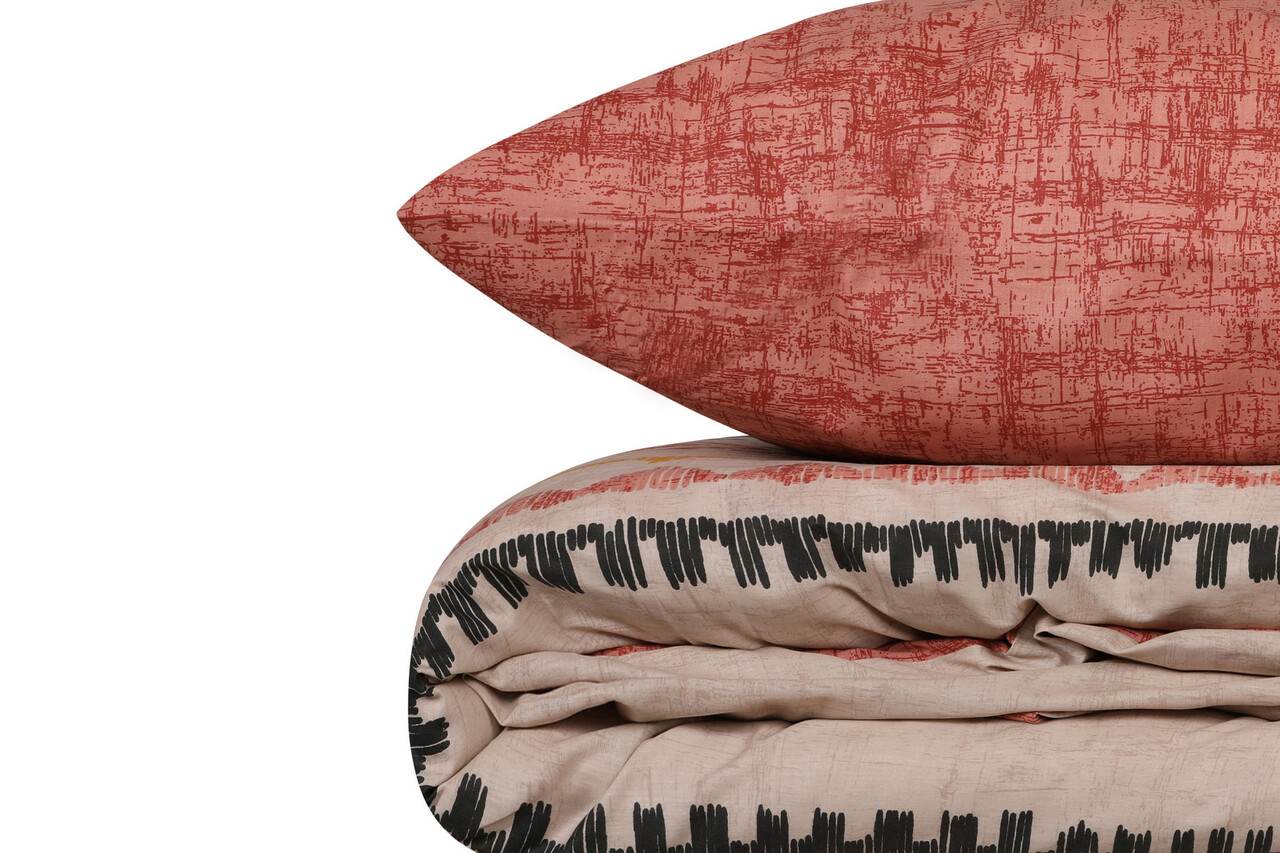 Lenjerie de pat dubla King (FR), L'essentiel Maison, Felix, Tile Red / Yellow / White / Black