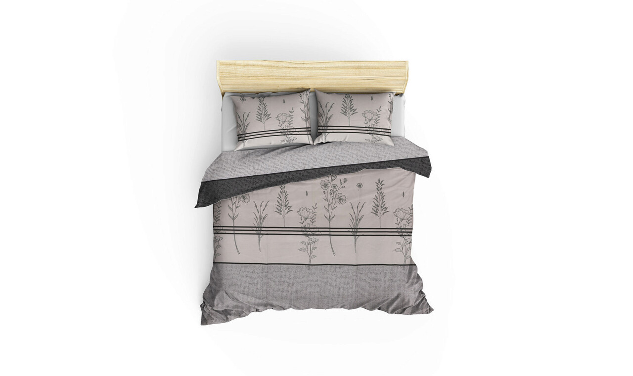 Lenjerie de pat dubla King (FR), Pine - Grey, Life Style, Bumbac Ranforce