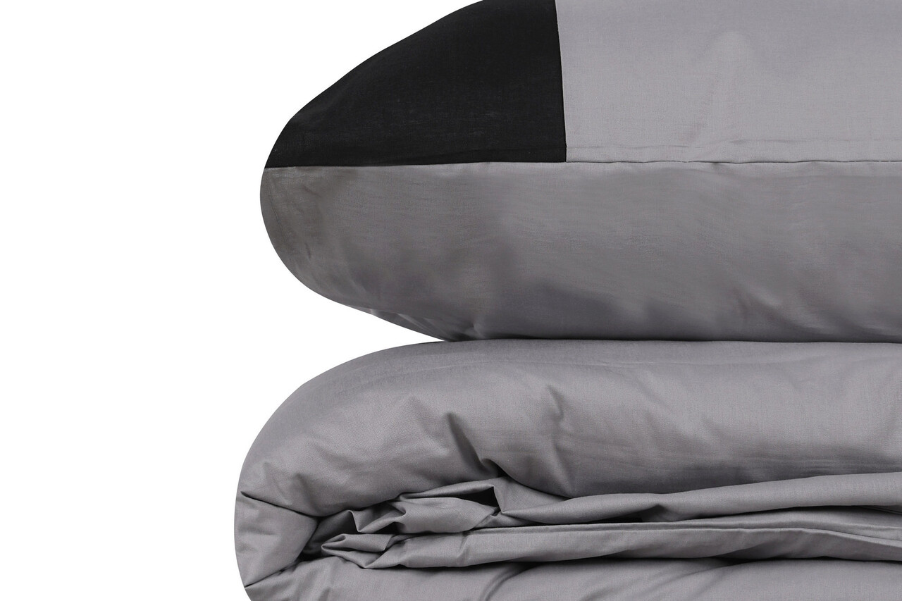Lenjerie de pat dubla King (FR), Plain - Grey, Black, Cutie de bumbac, Bumbac Ranforce