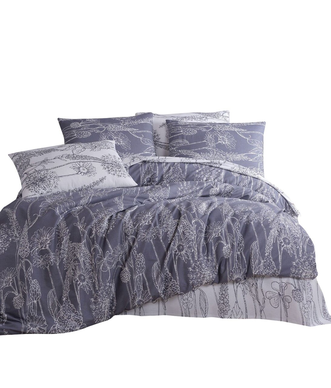 Lenjerie de pat dubla King (IT), 3 piese, L'essentiel Maison, Lara, Gri/Alb