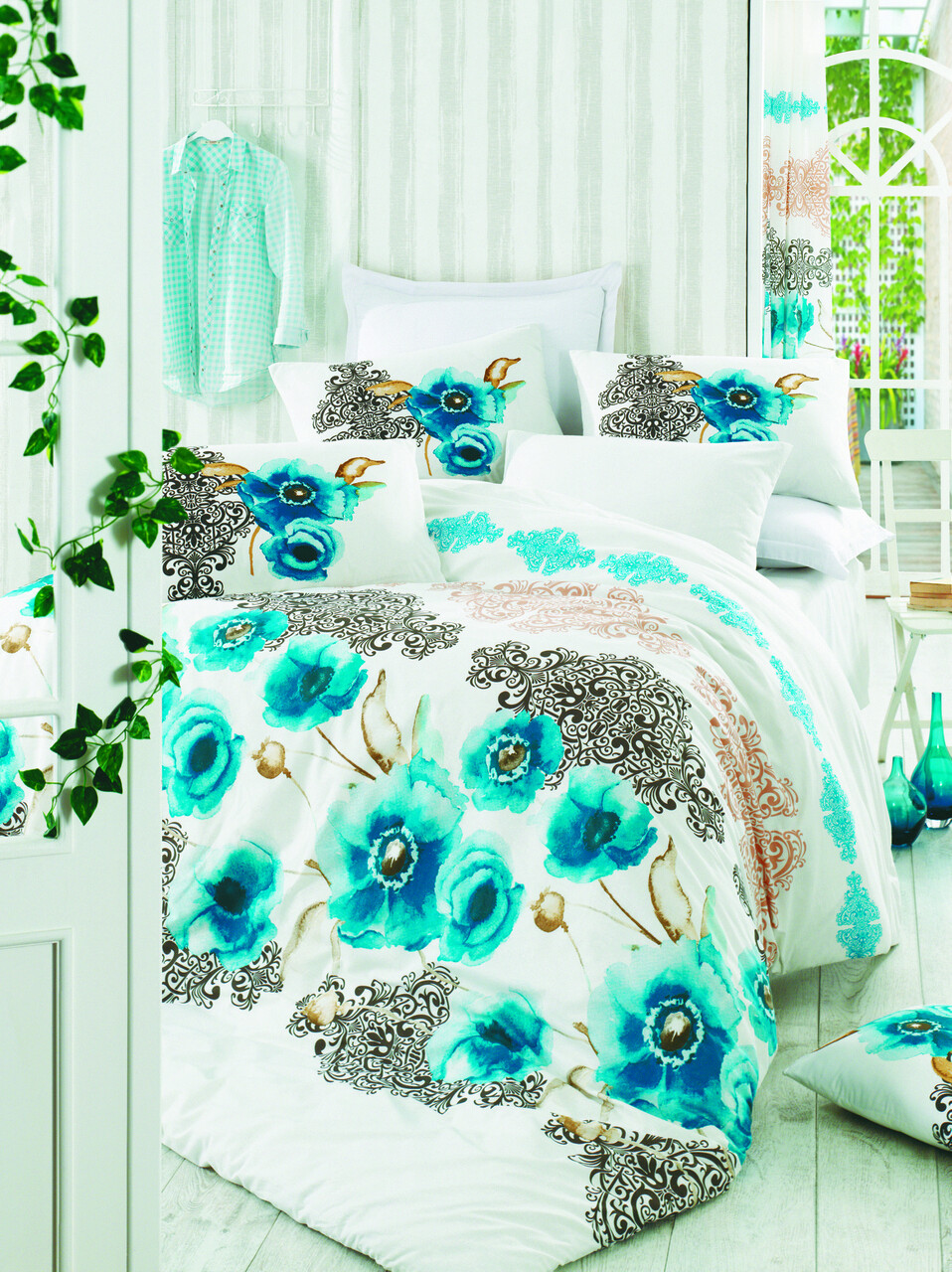 Lenjerie de pat dubla King (IT), Merve - Turquoise, Pearl Home, Bumbac Ranforce
