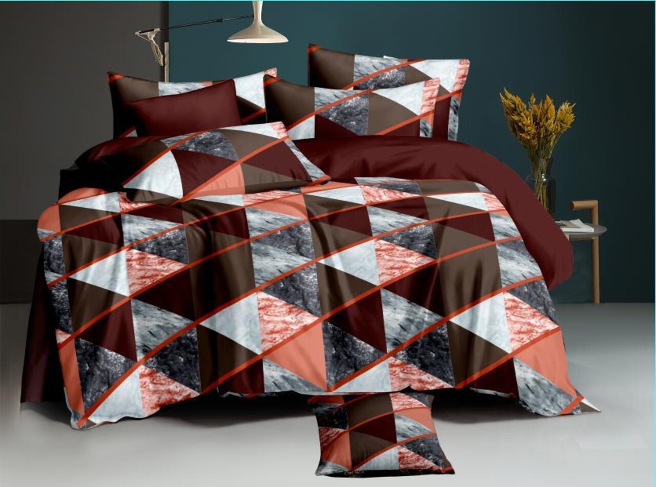 Lenjerie de pat dubla, King Size, 4 piese, BS006, policoton, multicolor