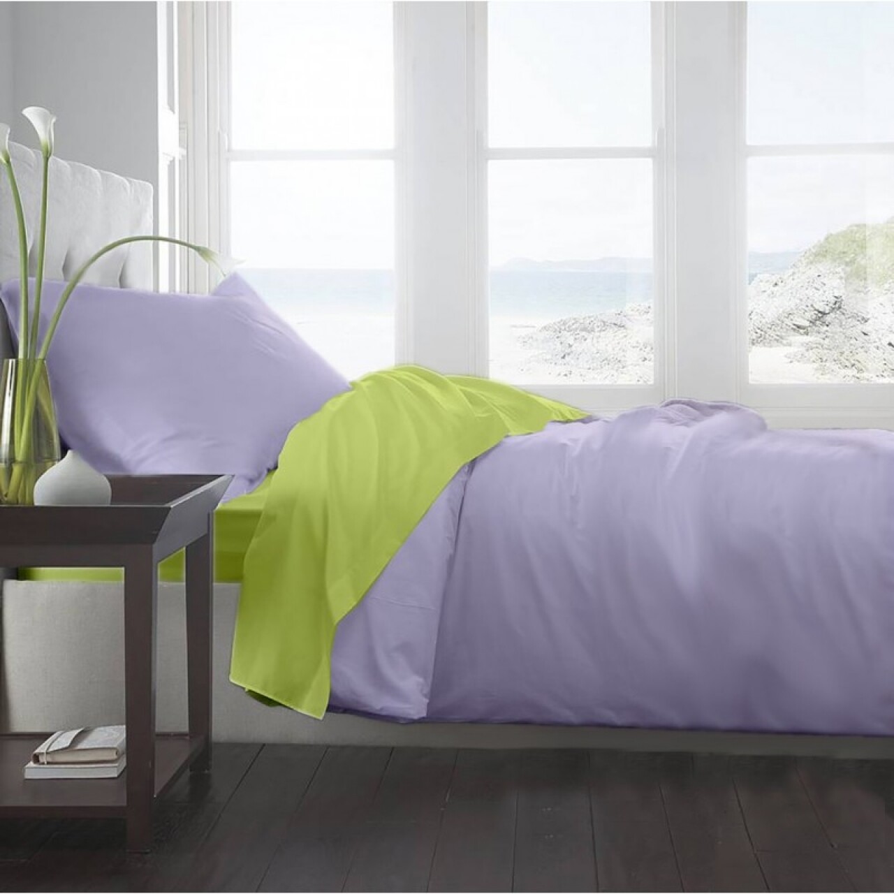 Lenjeria de pat dubla King Lime & Lila este o lenjerie foarte eleganta si rafinata, potrivita pentru persoanele adepte ale stilului minimalist. Lipsa imprimeului ii asigura o incadrare perfecta in orice tip de decor iar combinatia de culori ofera parca o doza de optimism.