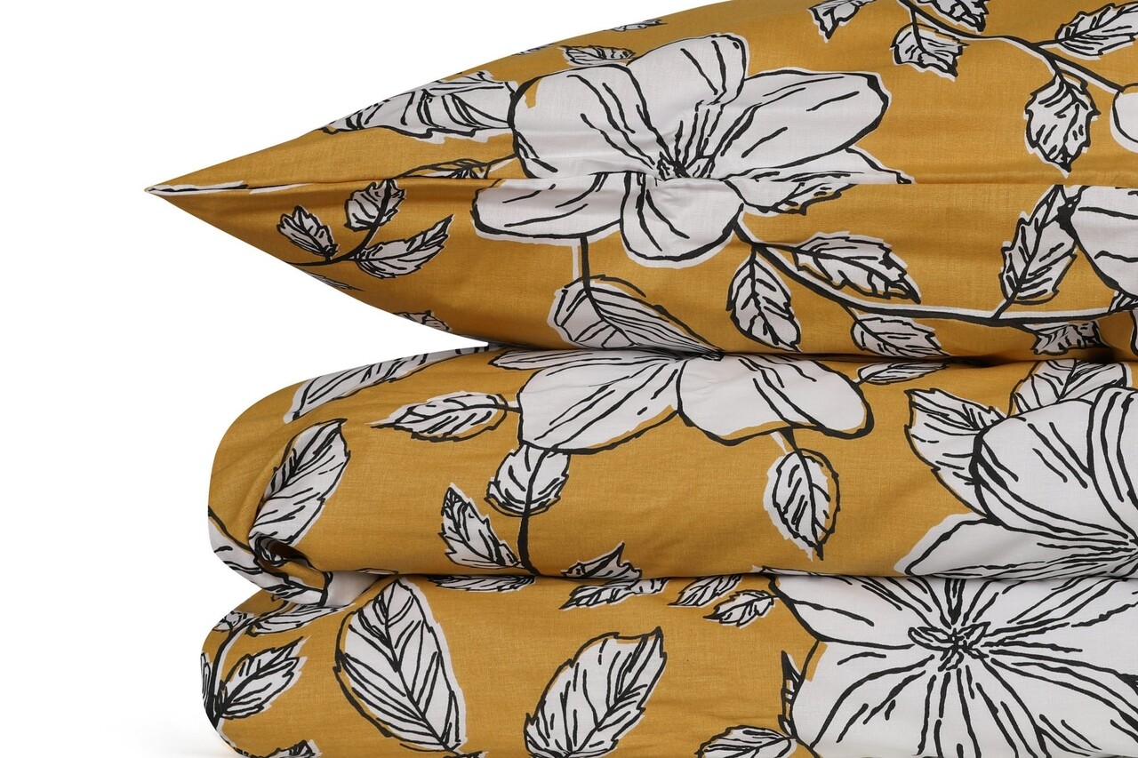 Setul este format din: husa pilota 220x260 cm cu inchidere cu nasturi si 2 fete de perna 50x80 cm cu inchidere tip plic.