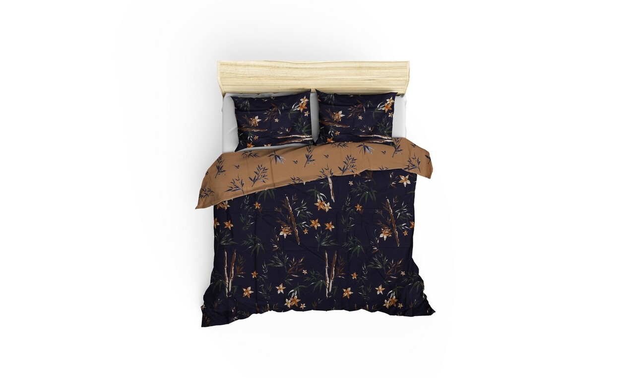 Lenjerie de pat dubla King(FR) Bamboo - Flower, Primacasa by Türkiz, 3 piese, 240x220 cm, bumbac satinat, multicolor