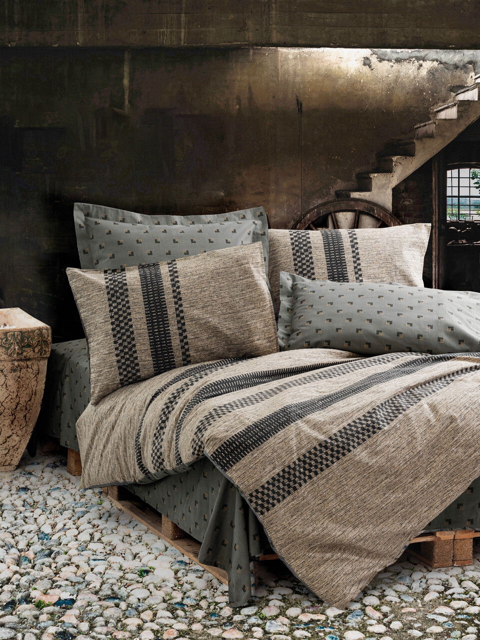 Lenjerie de pat dubla, L'essentiel Maison, Arlo, Maro / Negru / Gri