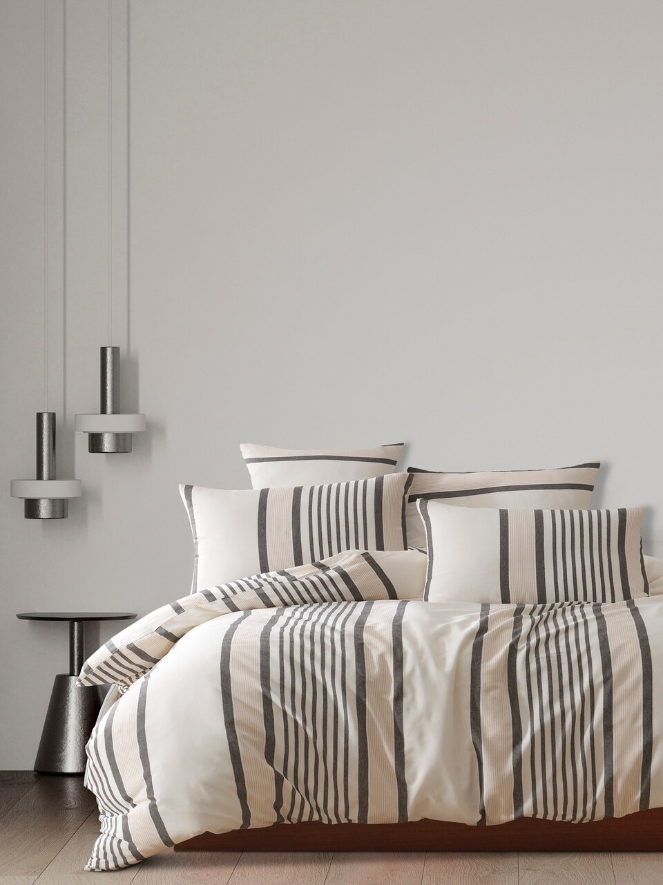 Lenjerie de pat dubla, L'essentiel Maison, Astana, Bumbac;Poliester, Bej/Negru
