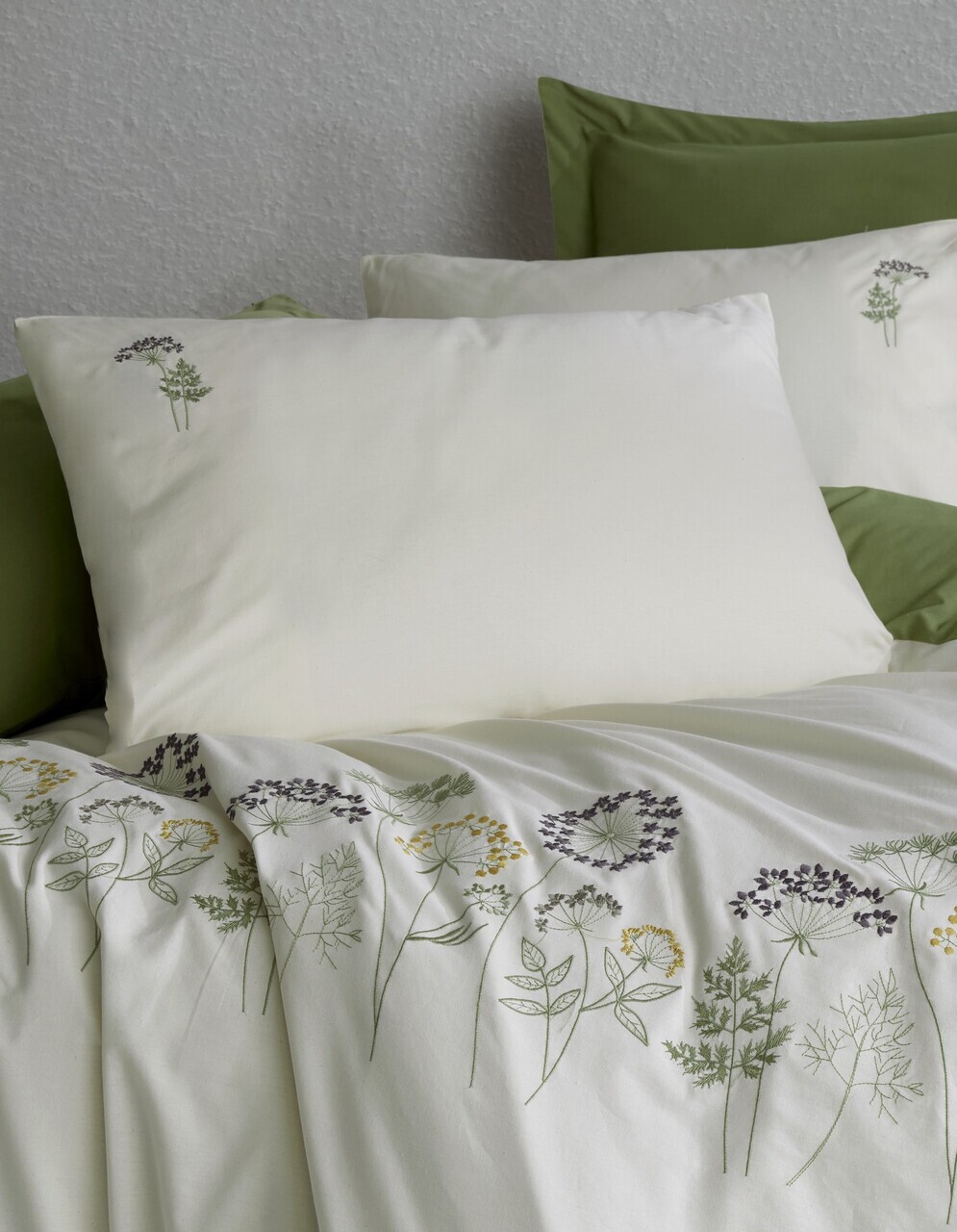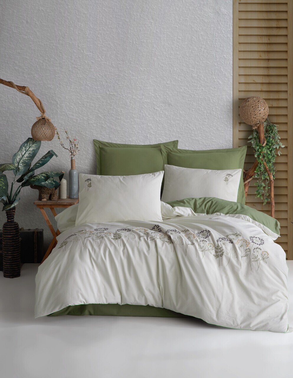 Lenjerie de pat dubla, L'essentiel Maison, Botanic, Bumbac, Verde