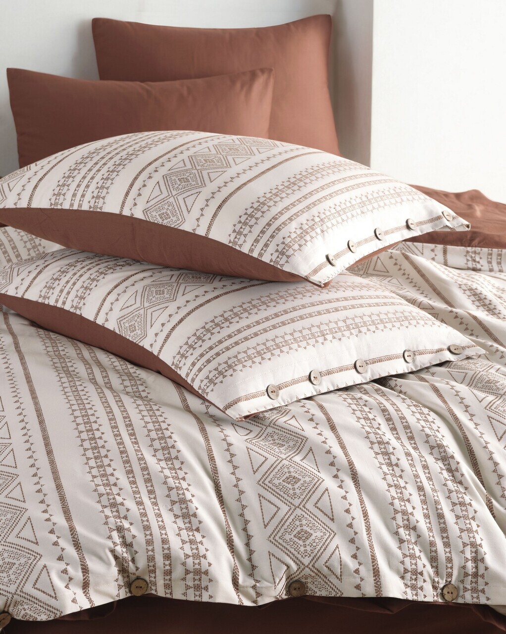 Lenjerie de pat dubla, L'essentiel Maison, Coastal Trio, Bumbac Satinat, Teracotă / Crem
