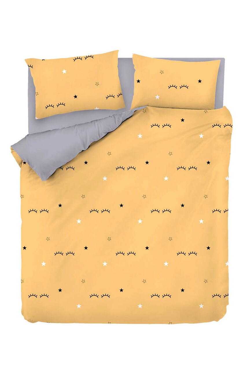 Lenjerie de pat dubla, L'essentiel Maison, Dide, Galben / Gri / Negru