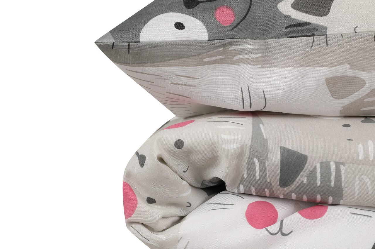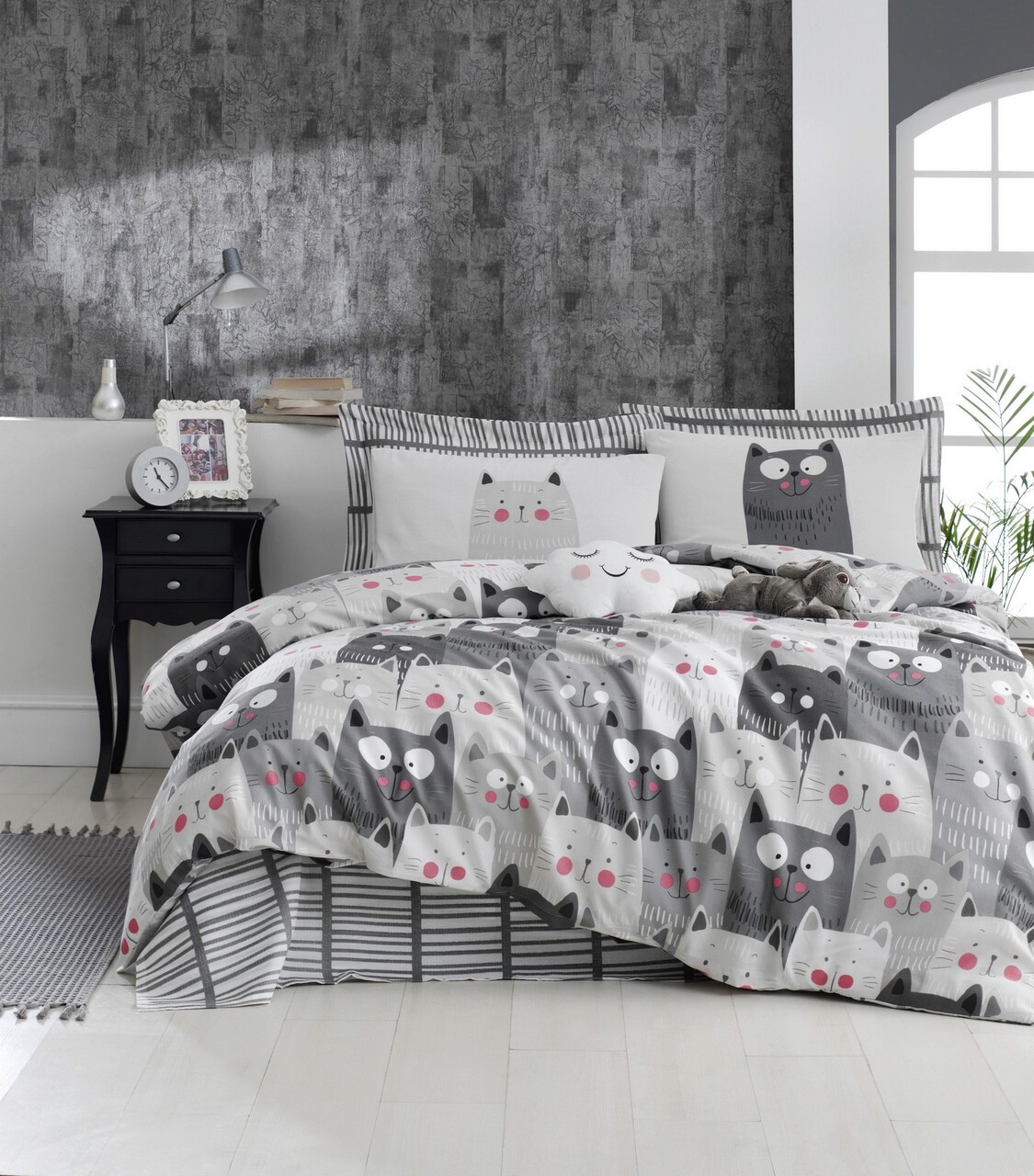 Lenjerie de pat dubla, L'essentiel Maison, Duvarda Kediler, Alb / Gri / Negru