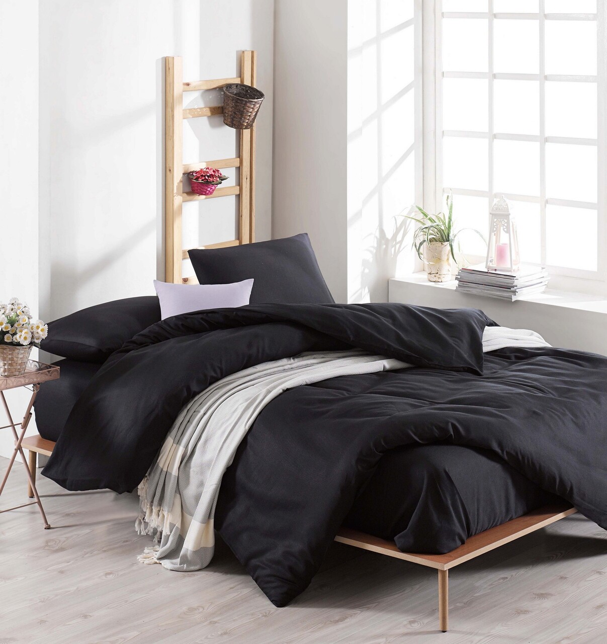 Lenjerie de pat dubla, L'essentiel Maison, Düzboya, 65% bumbac/35% poliester, Negru