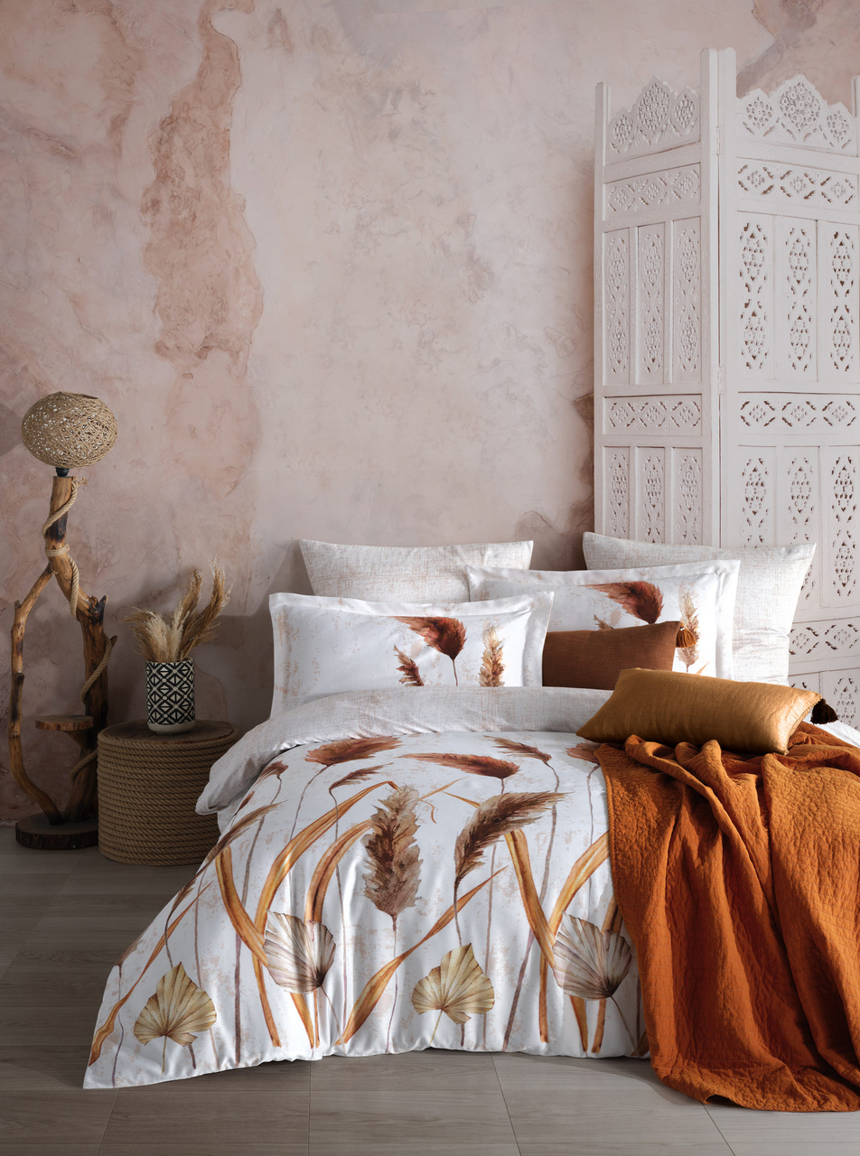Lenjerie de pat dubla, L'essentiel Maison, Fadime, Alb / Portocaliu / Maro